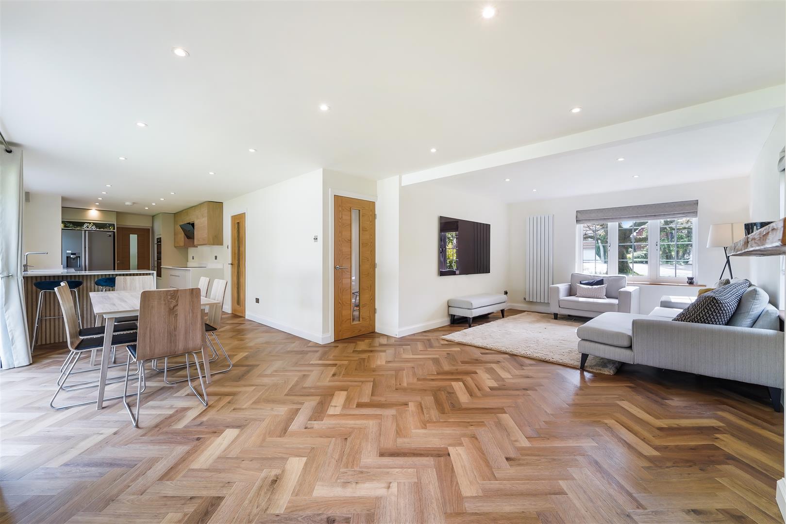 Large L-shaped room overlooking the front garden and the rear garden. Providing direct access into the rear garden through double french doors and access into the kitchen and hallway