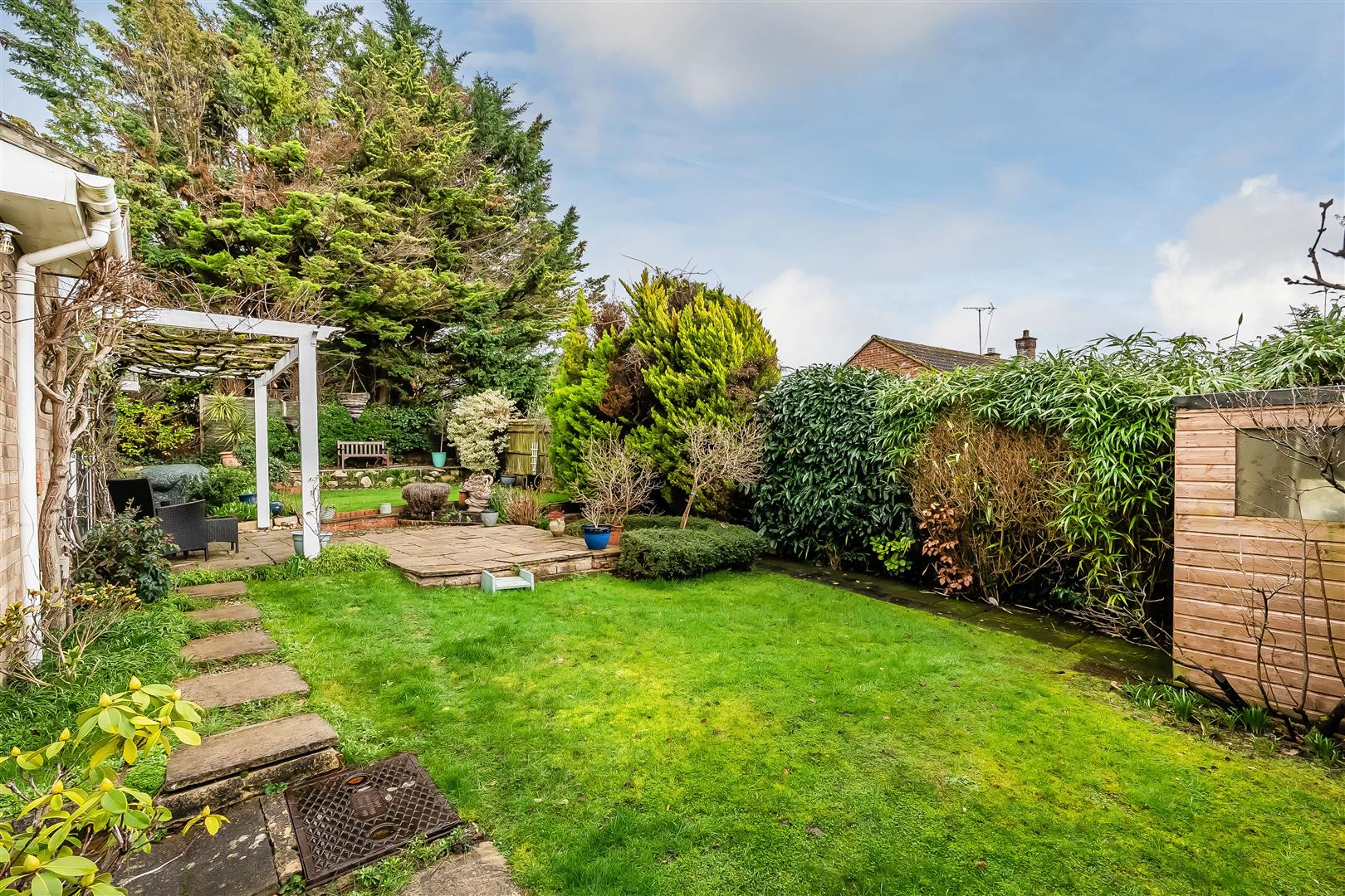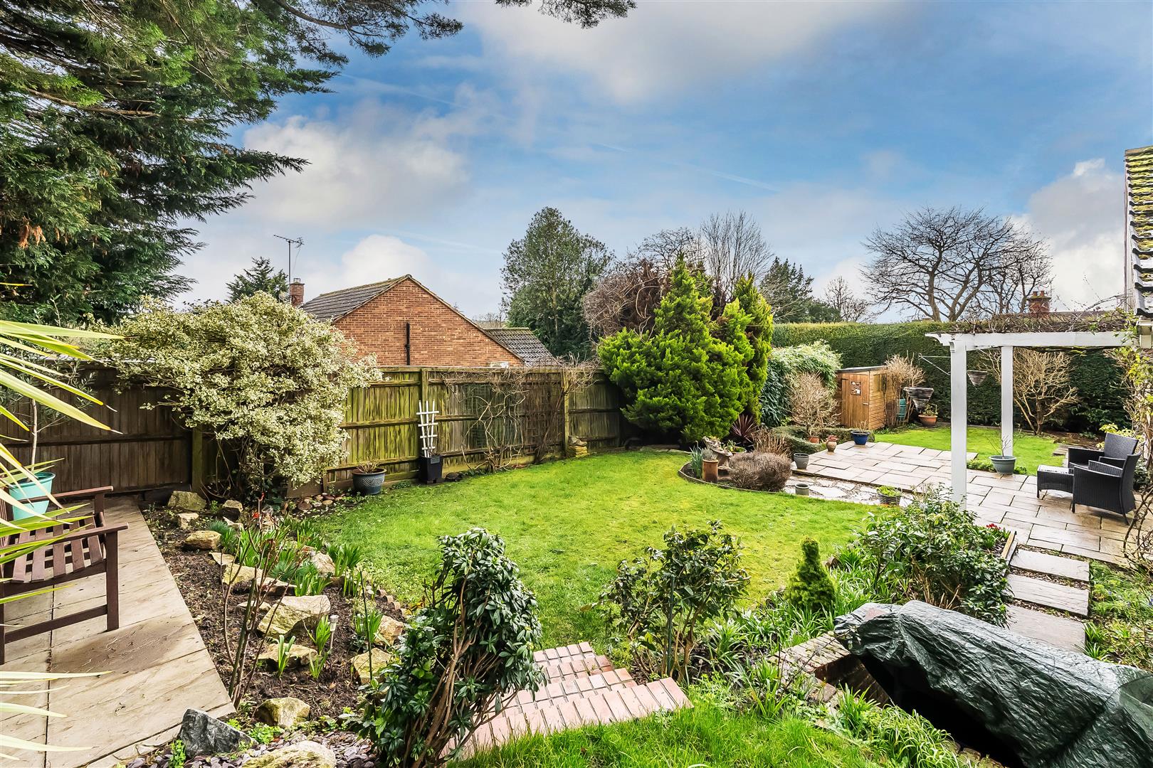 The property is enveloped by the pretty and mature gardens. Approaching from the front the driveway sits aside a lawn with planted borders. The side access leads to the southerly rear aspect, this is where generous planting and hedging are used to optimum effect for privacy with a sunny backdrop. The vine covered patio, which feels like a room, interacts with the interior via the sliding glazed doors and is the point where inside and out meets. It suggests easy al fresco dining.