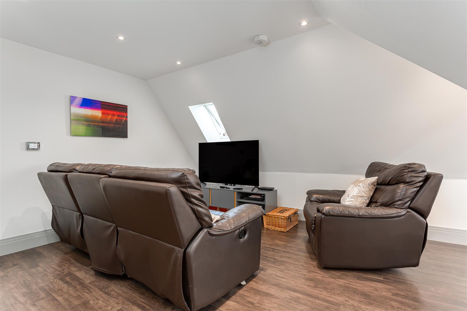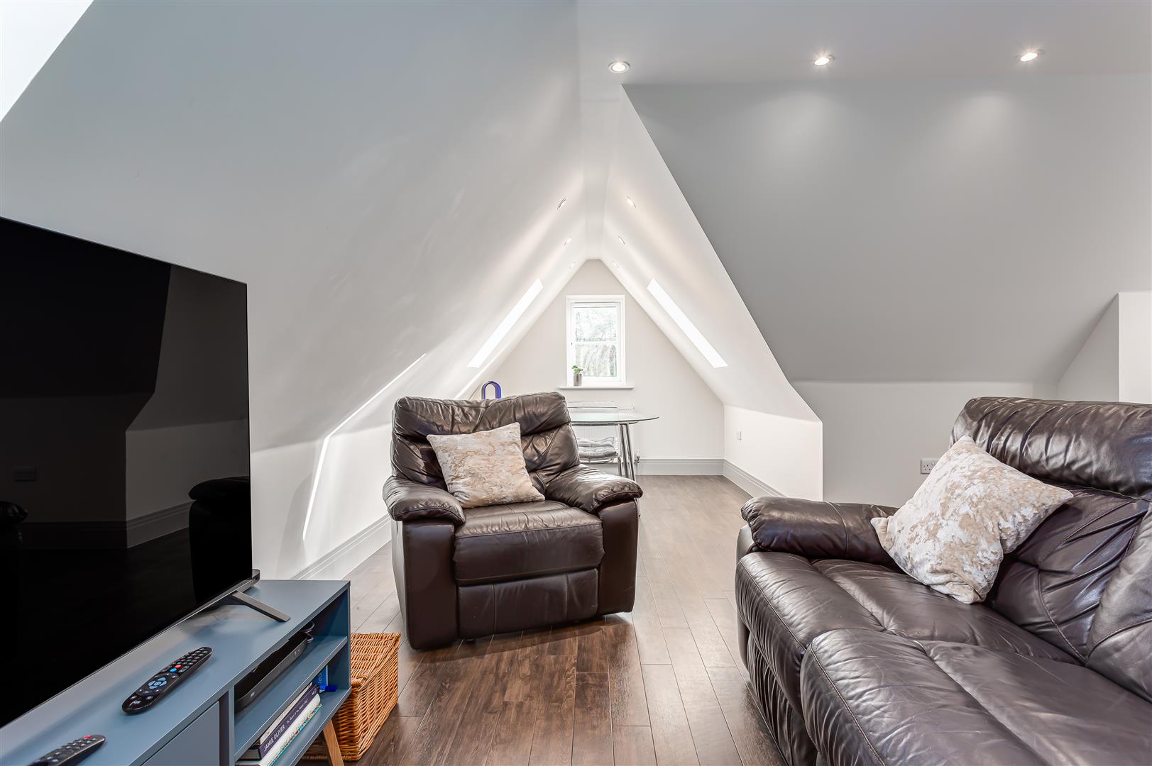 Downlighters. Velux windows to the side and front. Continuation of the hardwood veneers engineered flooring.. 2 x radiators. Digital thermostatic control. Pre-wired connections for satellite television and terrestrial tv.