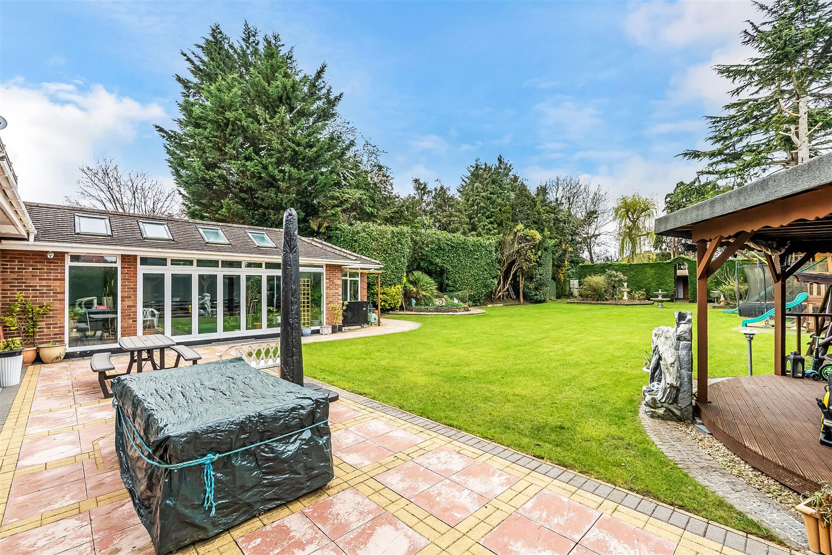 A south west facing rear garden measures 166 ft x 84 ft. The frontage measures 90ft x 46 ft and the plot measures 0.5 of an acre. The gated entrance provides access to lots of parking via both the covered car port and driveway. Softened by the accompanying planting, the front as well as the back is immaculate and mature.