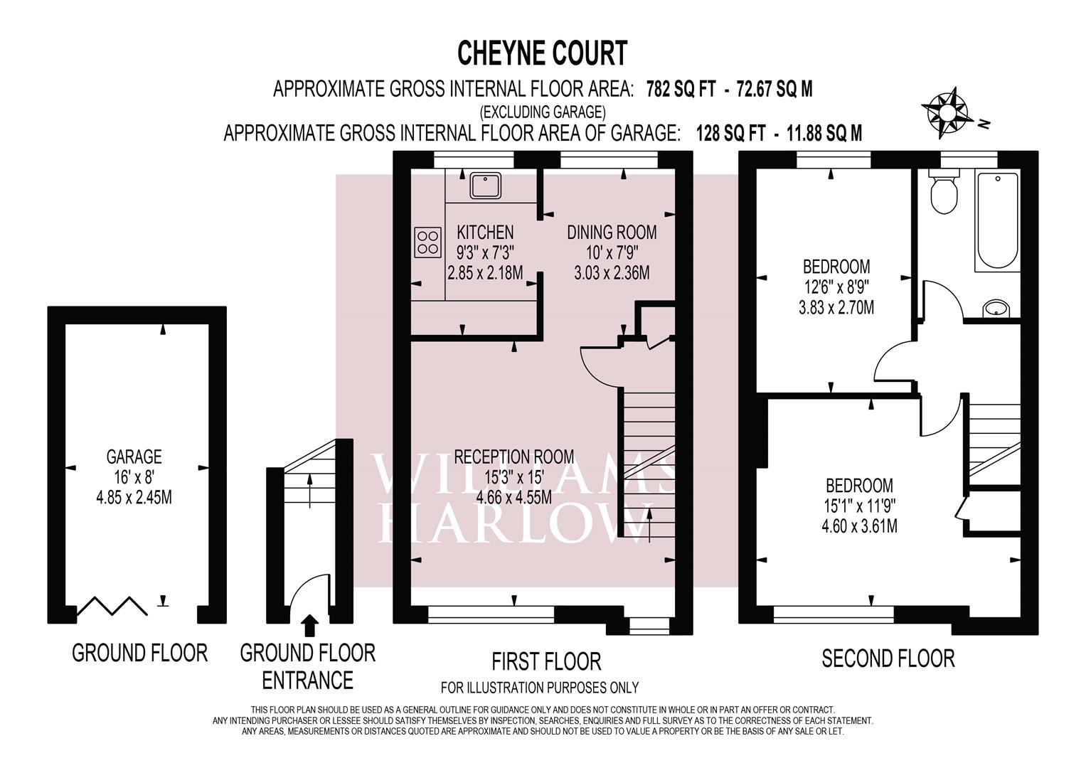 The property benefits from gas central heating and triple glazing, ensuring warmth and energy efficiency throughout the year. There is a garage located in a nearby block, providing extra storage or secure parking options.