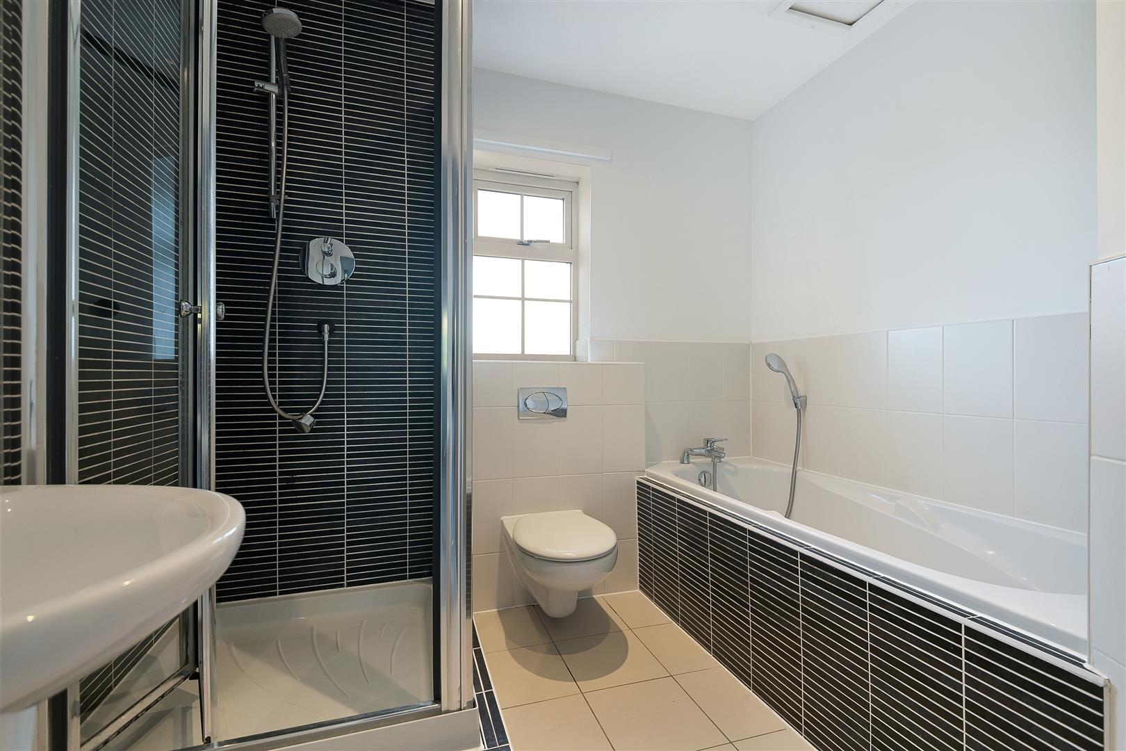 White suite comprising of panel enclosed bath with mixer tap and shower attachment. WC with concealed cistern. Fully enclosed shower cubicle with wall mounted shower. Wash hand basin. Shaver point, obscured glazed window to rear, downlighters and ceiling mounted extractor.