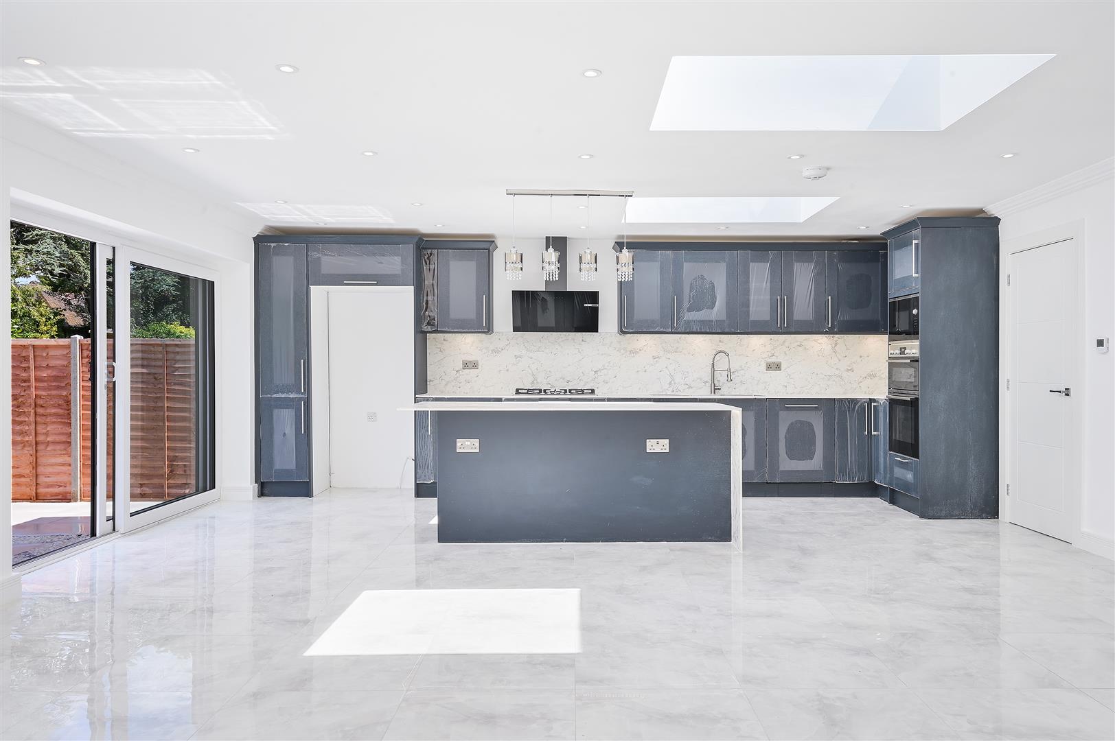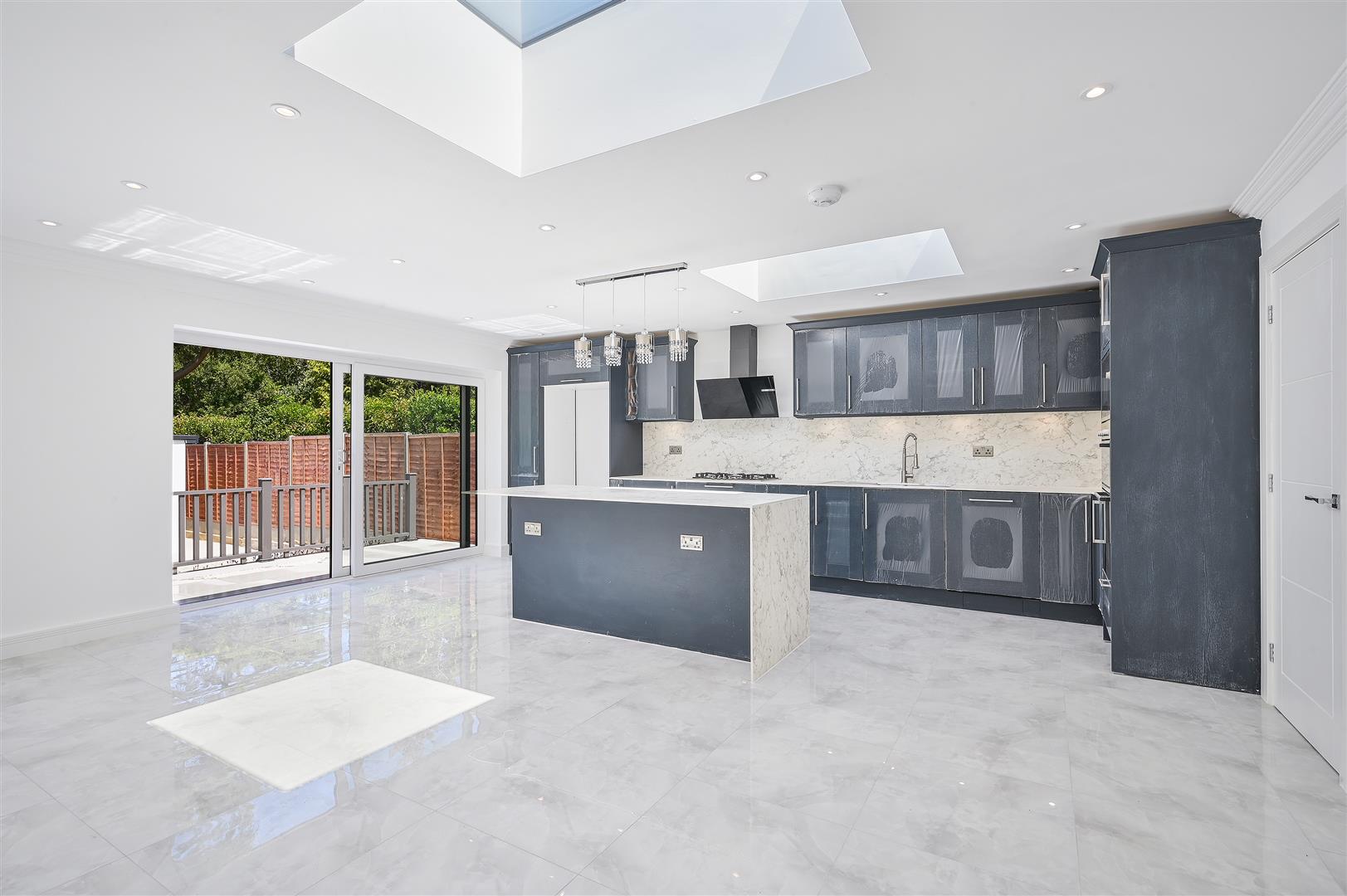 Huge open space with fully fitted kitchen and a large island counter. Lounge-dining space enough for large dining table and lounge furniture. Access into the garden provided by two large double-glazed sliding patio doors.