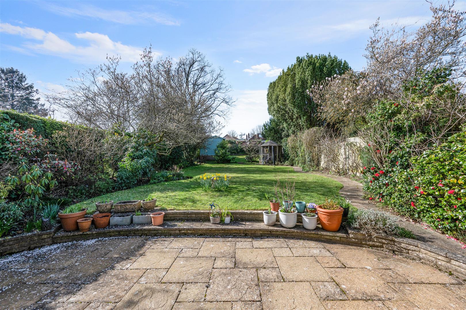 A feature of this property is the secluded west facing rear garden extending to approximately 115ft with a patio area with the remainder laid to lawn and an outdoor studio, a versatile space currently being used as an office as it has power and lighting. There is additional storage area to the side. To the front there is a good size driveway providing off street parking for up to four vehicles and a garage.