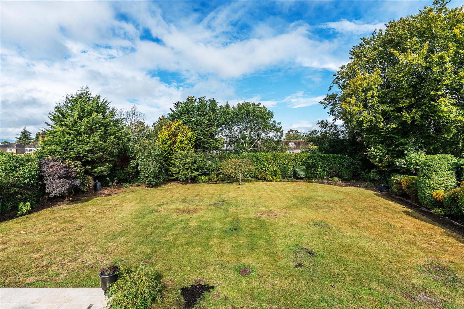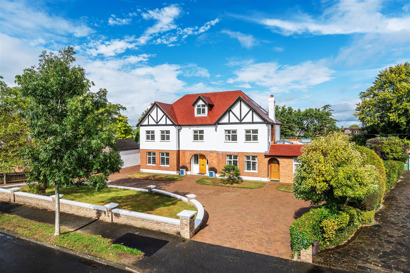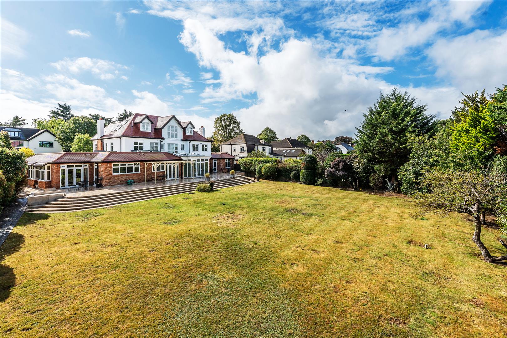 Plot = .49 of an acre, front width 81 ft, 124 ft rear width, rear length 108 ft. A wide carriage driveway which is set handsomely behind the capped dwarf brick wall and front garden delivers you to the front door to the main house and the entrance door to the annex. The rear garden is perfectly proportioned and offers a sweeping stone patio around the property and steps down onto the large lawn.