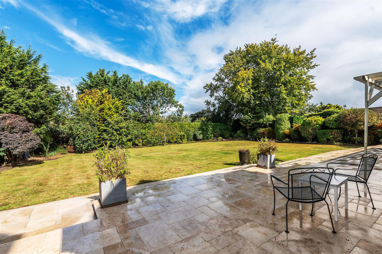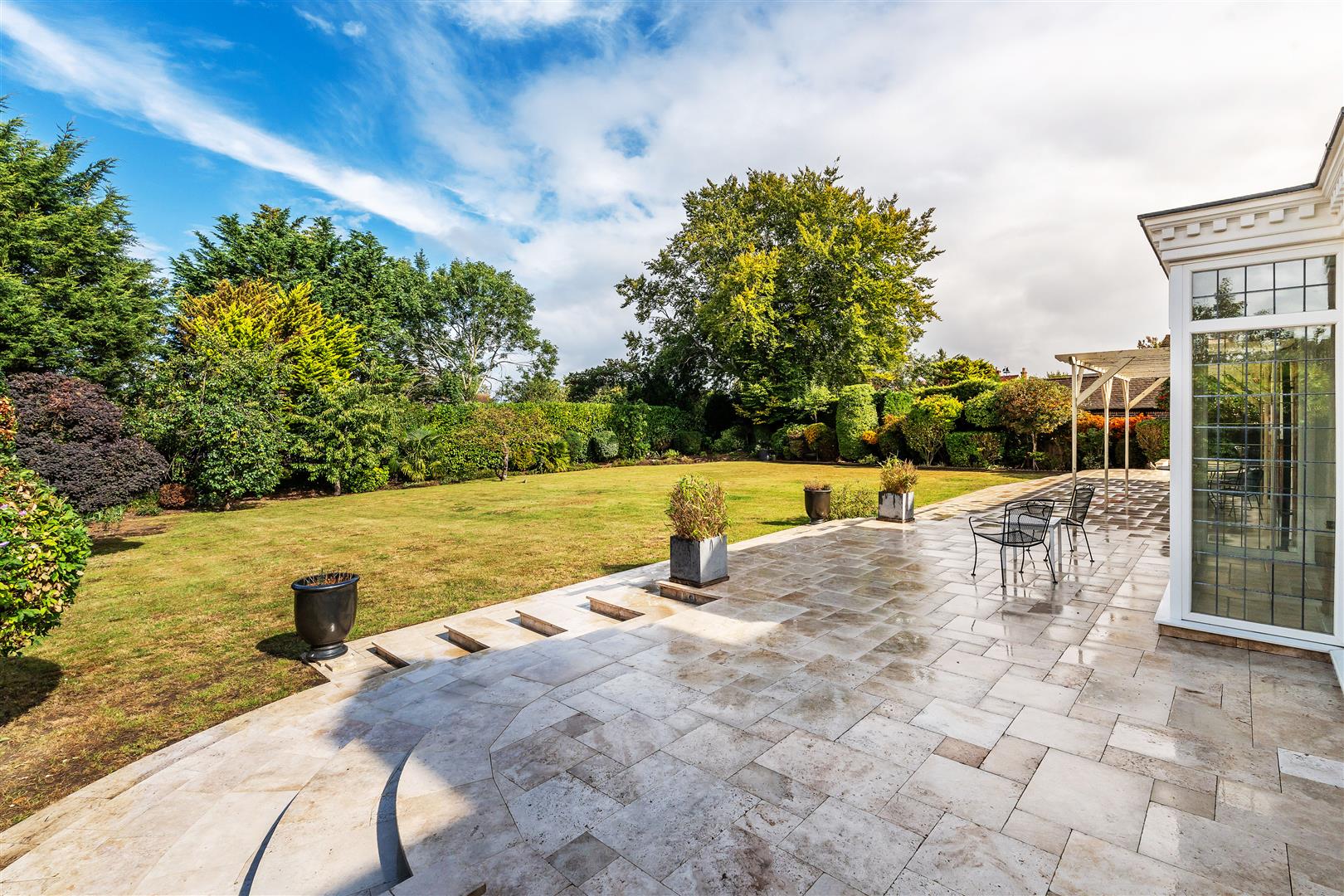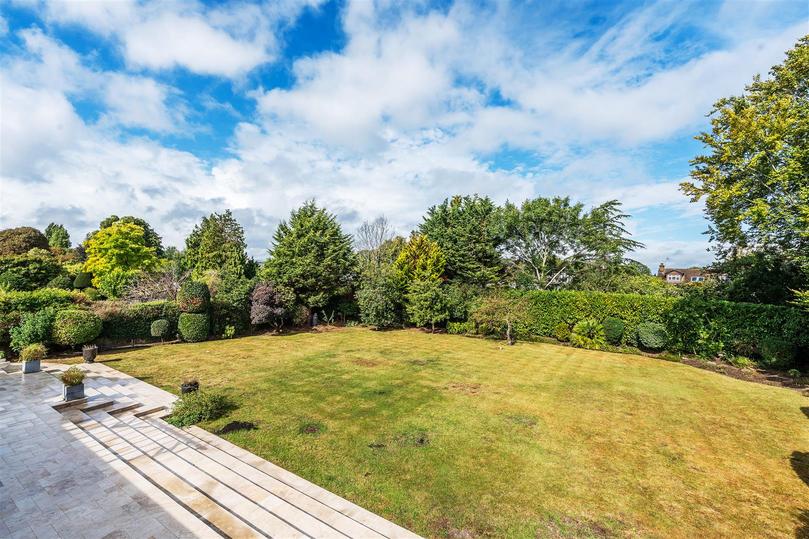 Plot = .49 of an acre, front width 81 ft, 124 ft rear width, rear length 108 ft. A wide carriage driveway which is set handsomely behind the capped dwarf brick wall and front garden delivers you to the front door to the main house and the entrance door to the annex. The rear garden is perfectly proportioned and offers a sweeping stone patio around the property and steps down onto the large lawn.