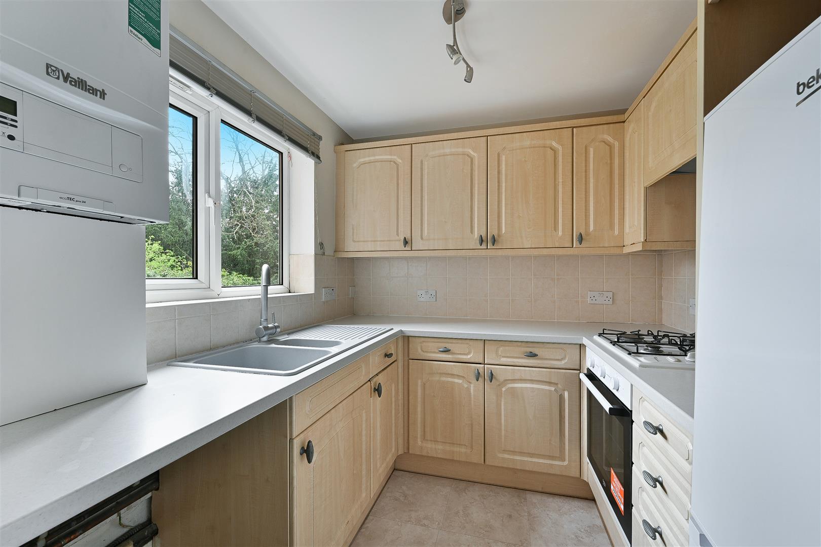 Well fitted with a modern range of wall and base units comprising of work surfaces incorporating a 1 1/2 bowl sink drainer with mixer tap. A comprehensive range of cupboards and drawers below the work surface with space and plumbing for washing machine and space for upright fridge freezer. There is a fitted oven and grill, surface mounted gas hob with extractor above. A range of eye level cupboards, window to side, wall mounted gas central heating boiler and part tiled walls.