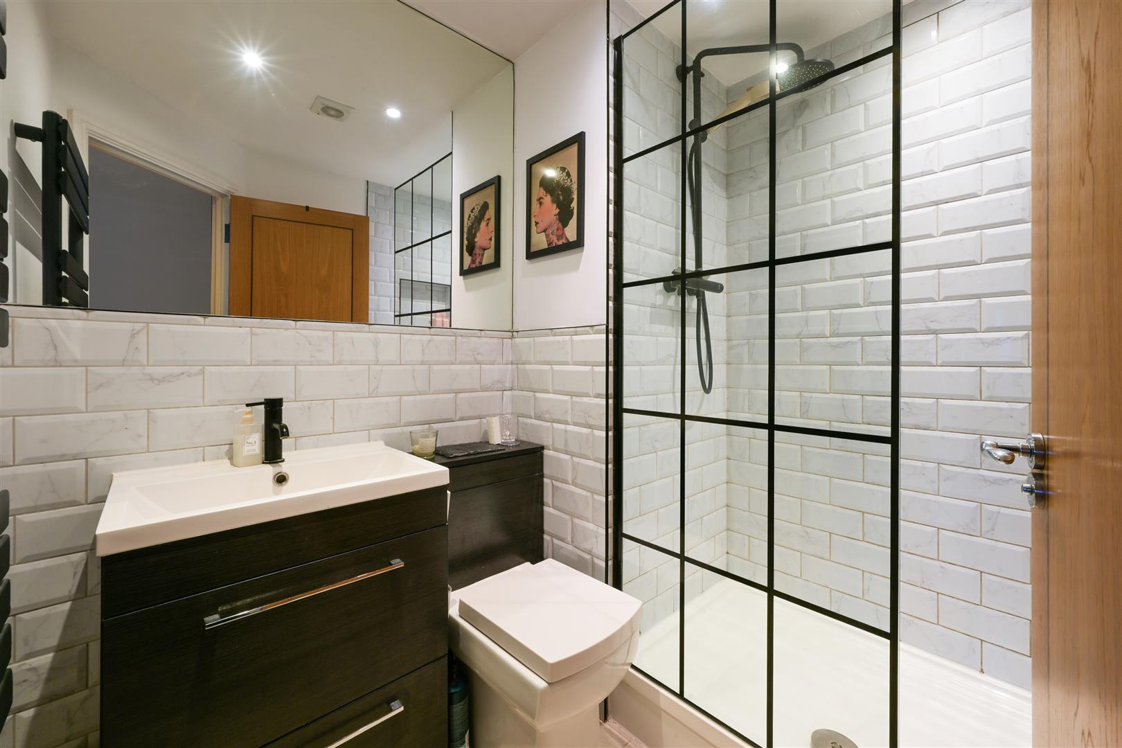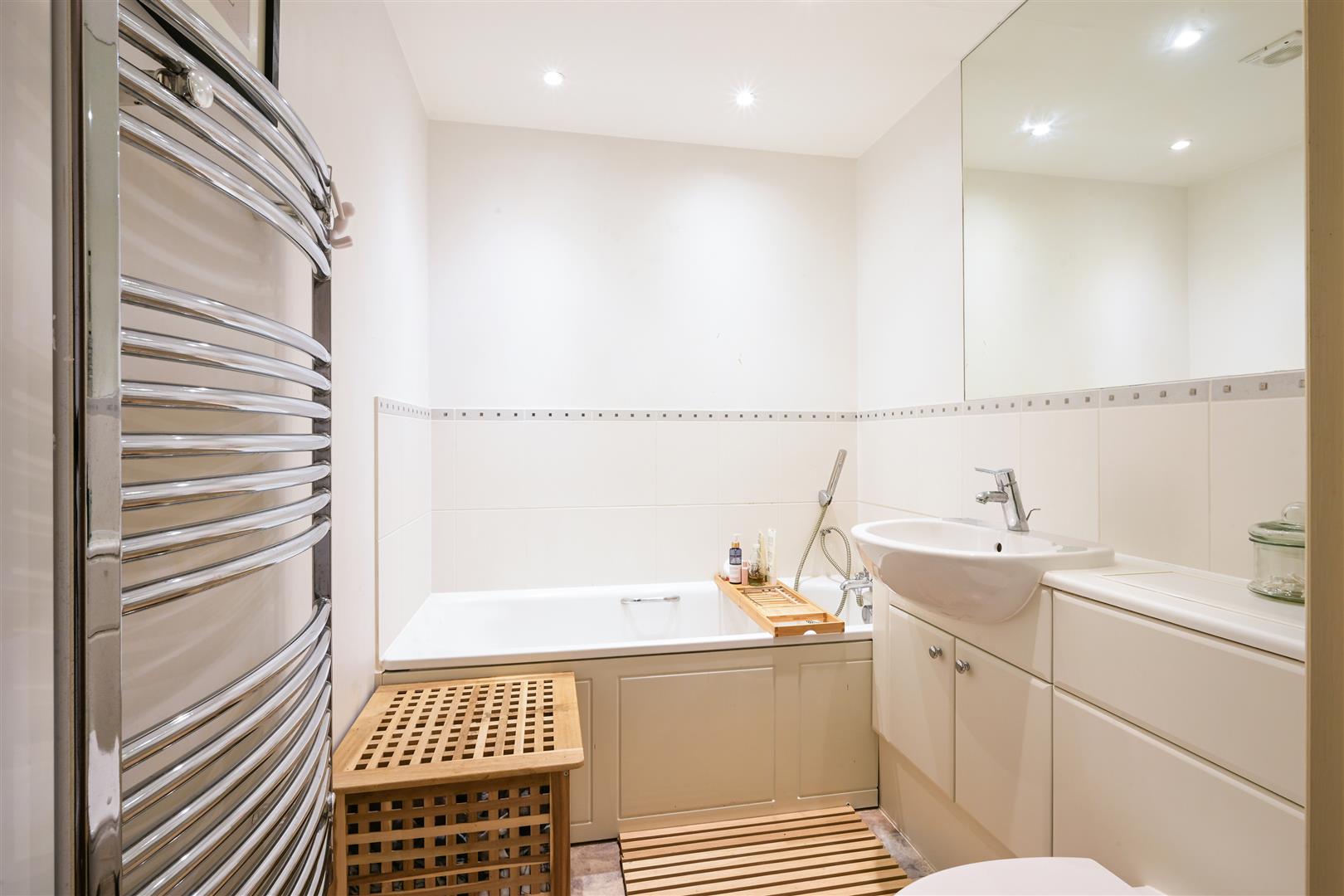 Shower over bath, WC, basin and heated towel-rail