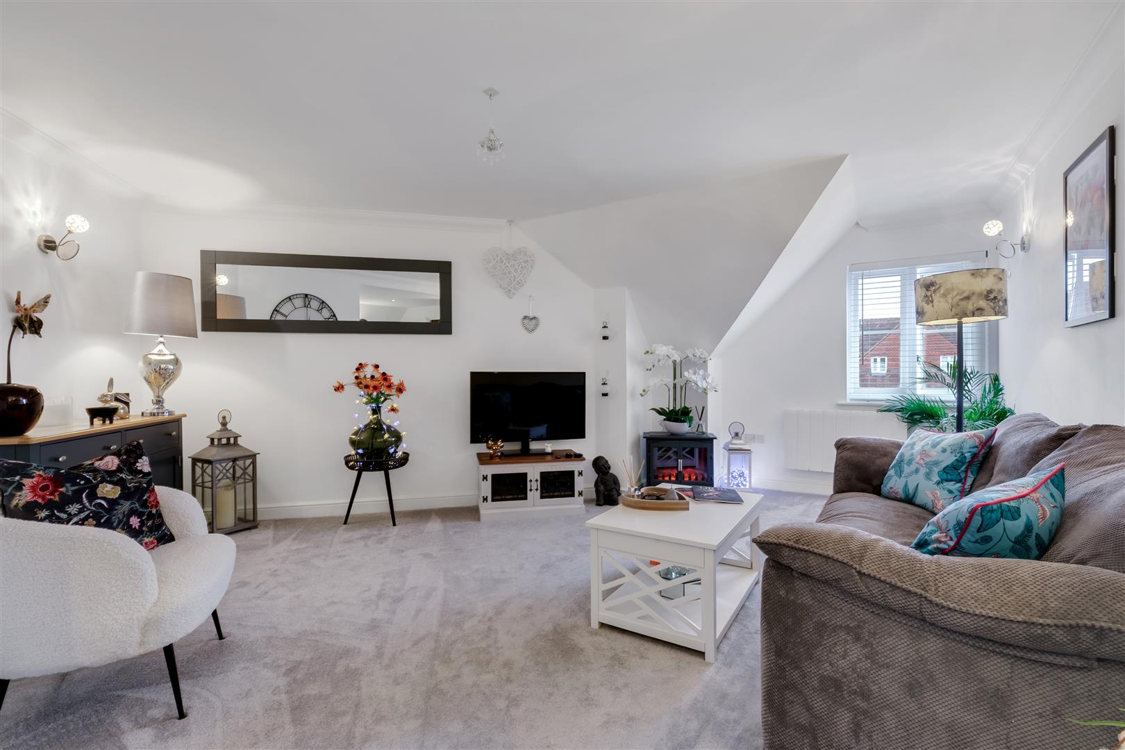 Downlighters. Coving. Wall mounted electric heater. Entry phone system. Cloaks cupboard. Window to the rear. 2 x additional cupboards, one of which houses the electricity consumer unit, the other the water apparatus.