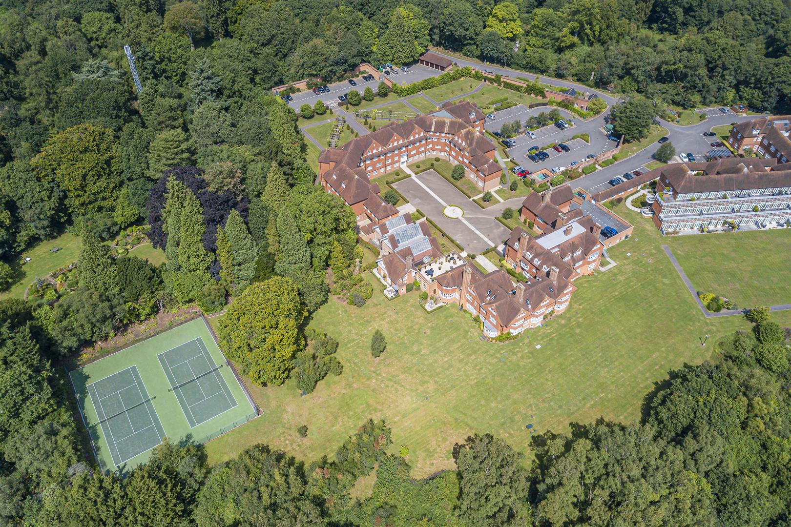 28 acres of landscaped ground, tennis courts, Chinese garden and allocated car parking space - EV charging ports as well.
