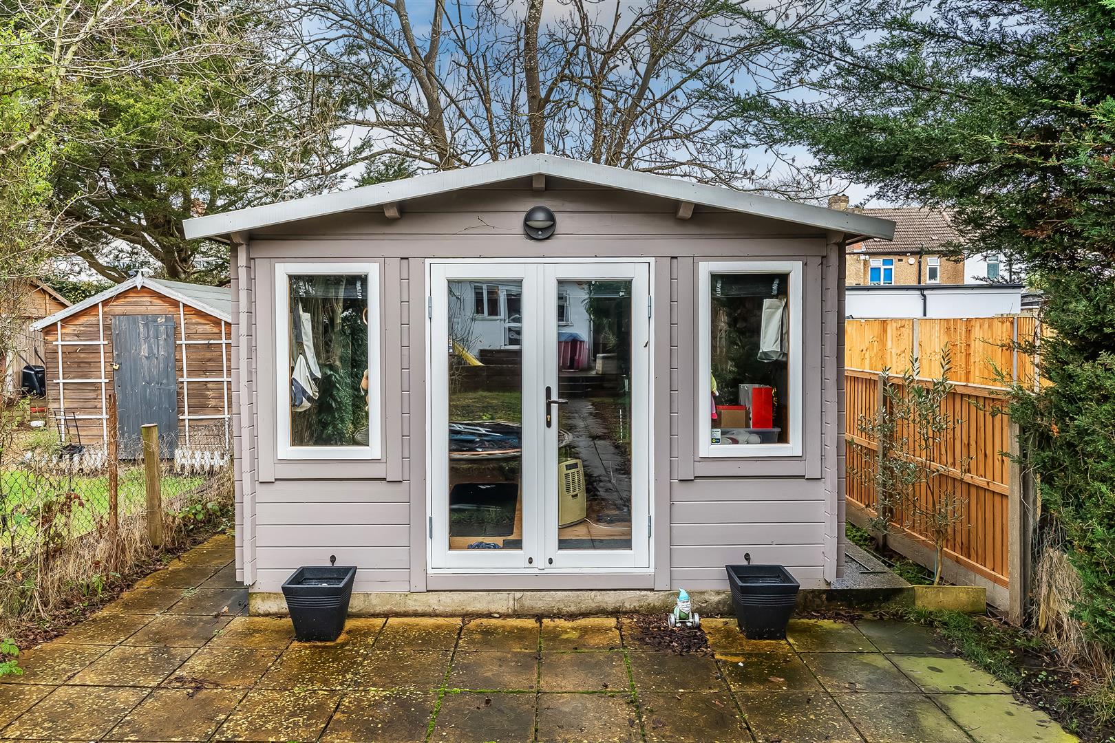 Block paved to front for two cars and a large mature garden to rear. The rear garden measures over 100 ft and is pretty and private. There is decking off the house (might need some TLC). The outbuilding are of interest and gain, the summer house has a smart gym set up whilst the shed is handy for any storage you need.