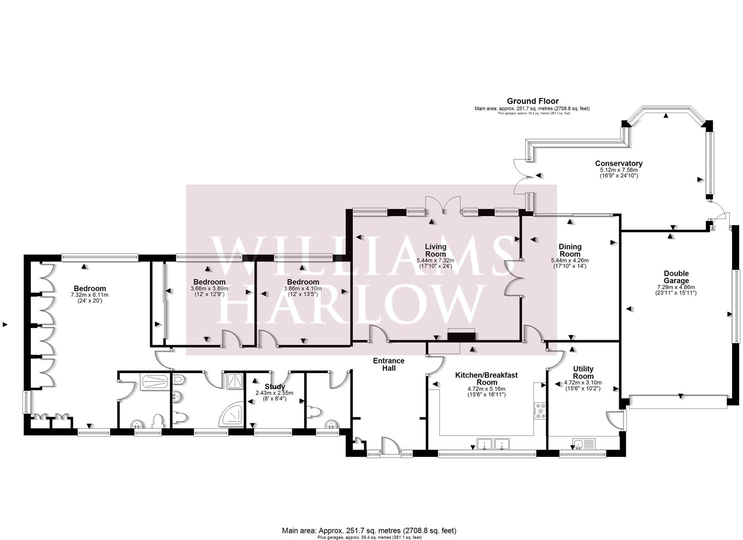 With its wide frontage the property provides impressive kerb appeal, located in this exclusive cul-de-sac in the heart of Kingswood in its leafy surroundings. The front door gives way to a very generous reception hallway where there is a WC and access to all four reception rooms, kitchen/breakfast room and large utility room. The accommodation has been well thought out in its design as all bedrooms are served off an independent wing where there is a spacious master bedroom with a re-fitted en-suite shower room and two further generous bedrooms served by a main bathroom.