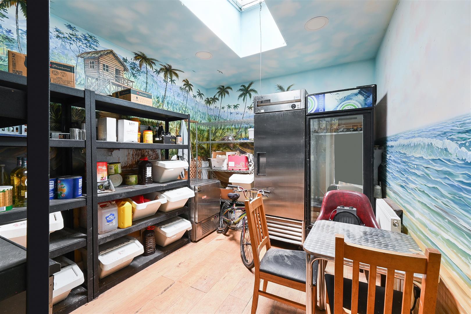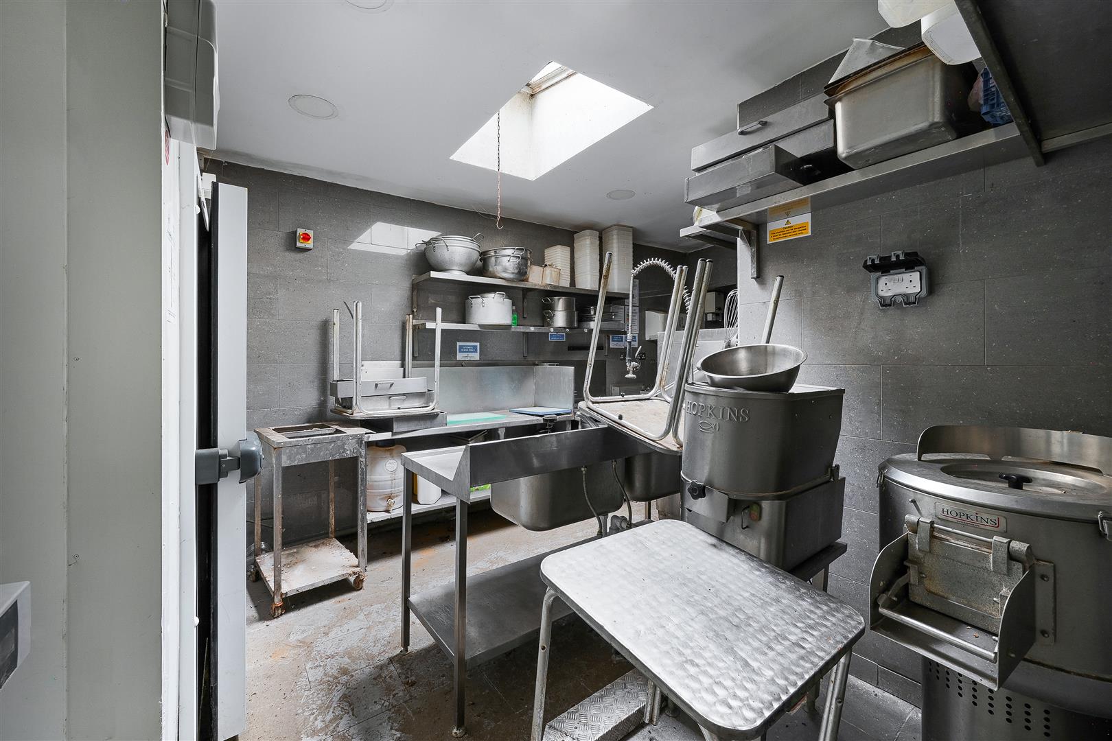 Located at the rear of the kitchen. Further commercial apparatus, sink and 2 large industrial freezers. This connects to a further: