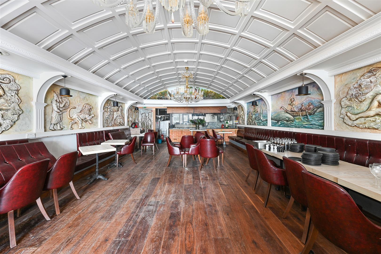 All is set under a relatively recently re-fitted bowel ceiling with inset lighting and detailed plaster work. There is bench seating to both sides, one of which covers conveyor for take away purposes which connects to the kitchen to the bar area which is set to the front which is of timber construction with granite surfaces and water supply.