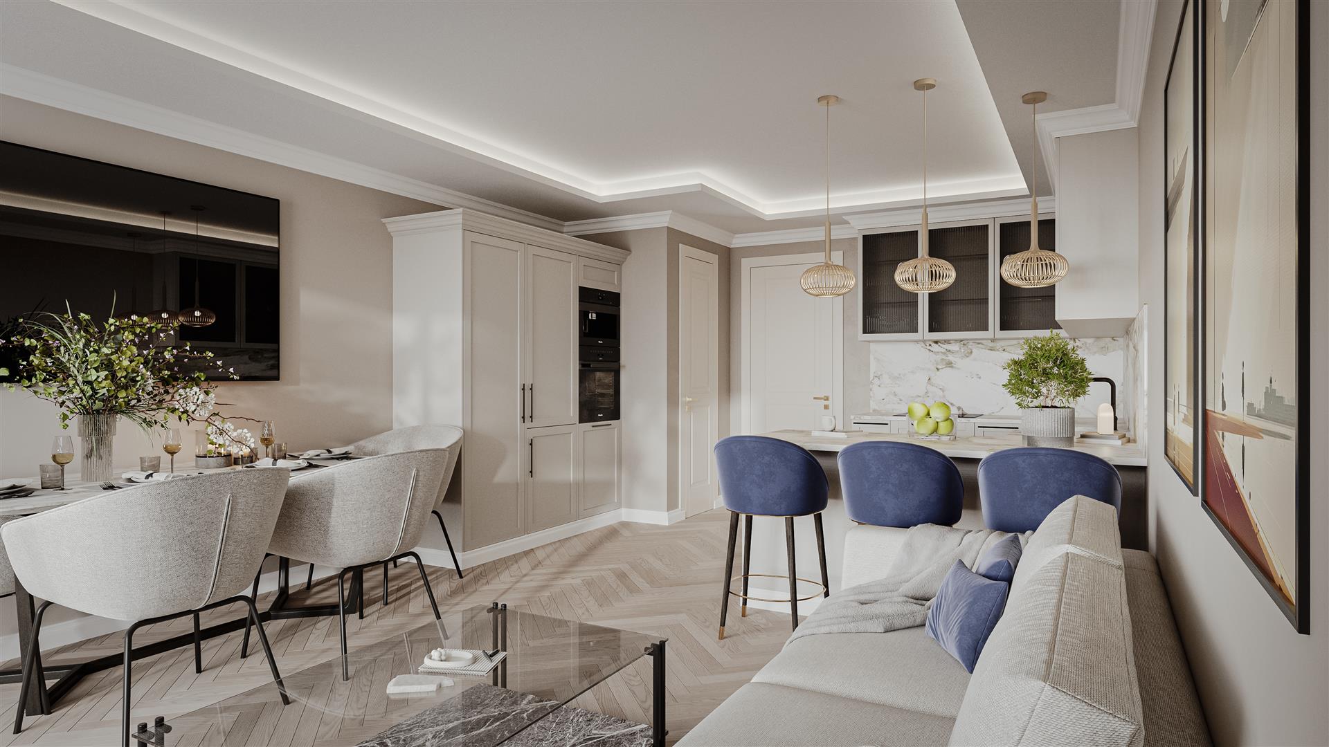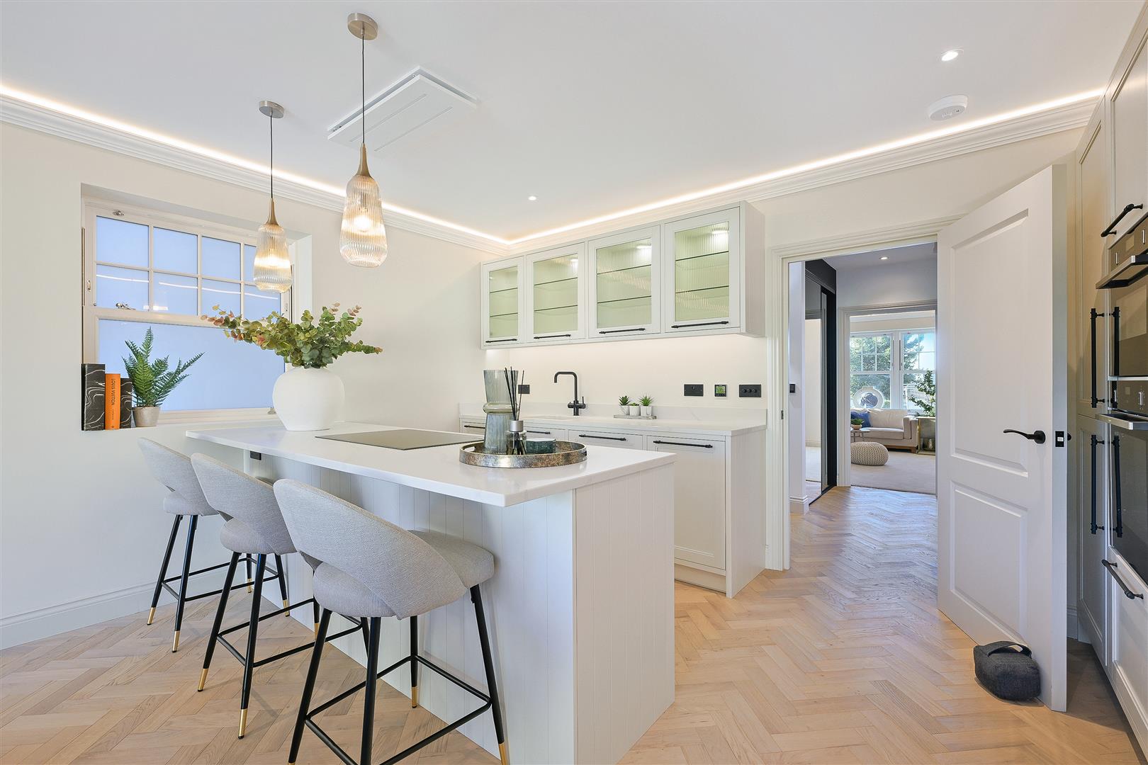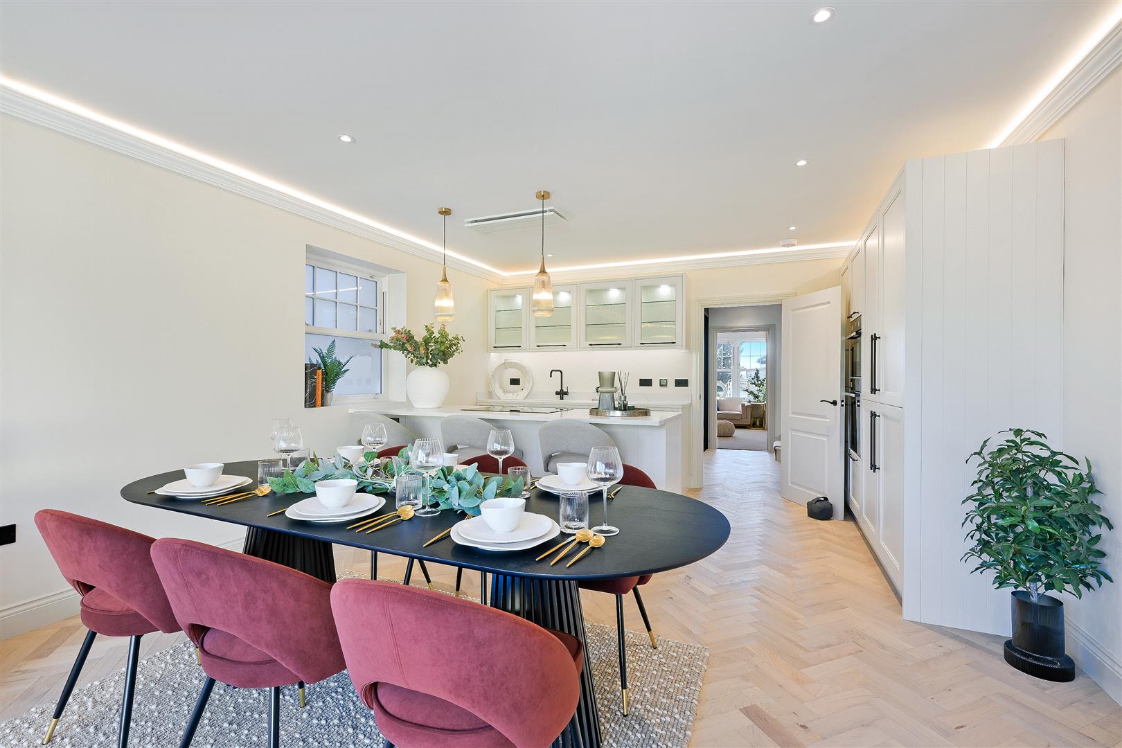 Lusso Herringbone Engineered Wood Floor with underfloor heating to ground floor.