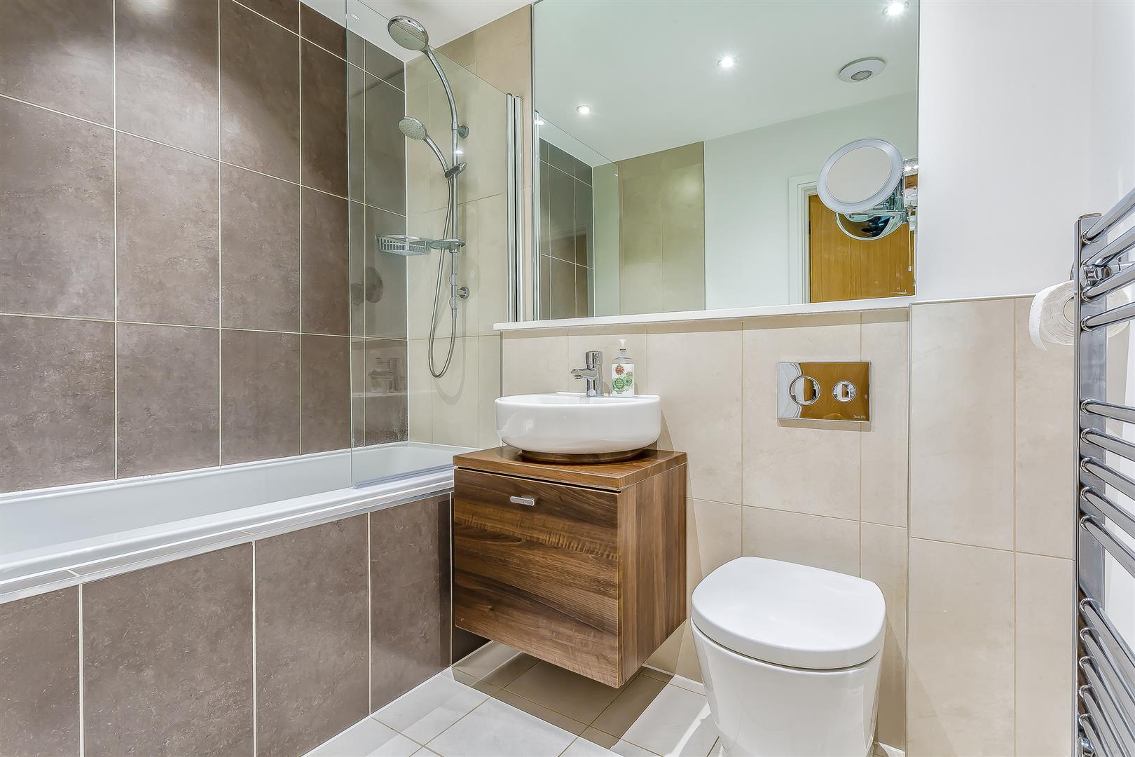Family bathroom with bath. Low level WC. Wash hand basin.
