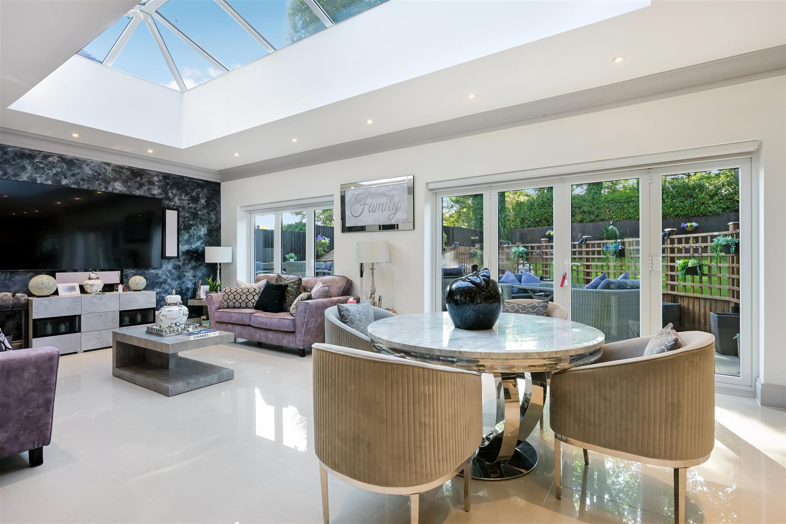 With over 3,000 feet of accommodation the property has been completely re-imagined and extended and considered in vendors ownership. Embarking on the tour you will notice the luxury fittings. The house dramatically mirroring a vibrant family life, a balanced layout to support a central family every day needs. An excellent example of this last point is that the property benefits from a study, sitting room and sizeable cinema room with full width kitchen/family dining room to the rear enjoying outlook over the garden. To the first floor you will find five bedrooms laid out over a spacious landing. The principle bedrooms one and two enjoy en-suite facilities alongside a main family bathroom. The cinema room could also be a games and a party space for winding down and relaxation together. This property offers something for everyone and is now ready to view.