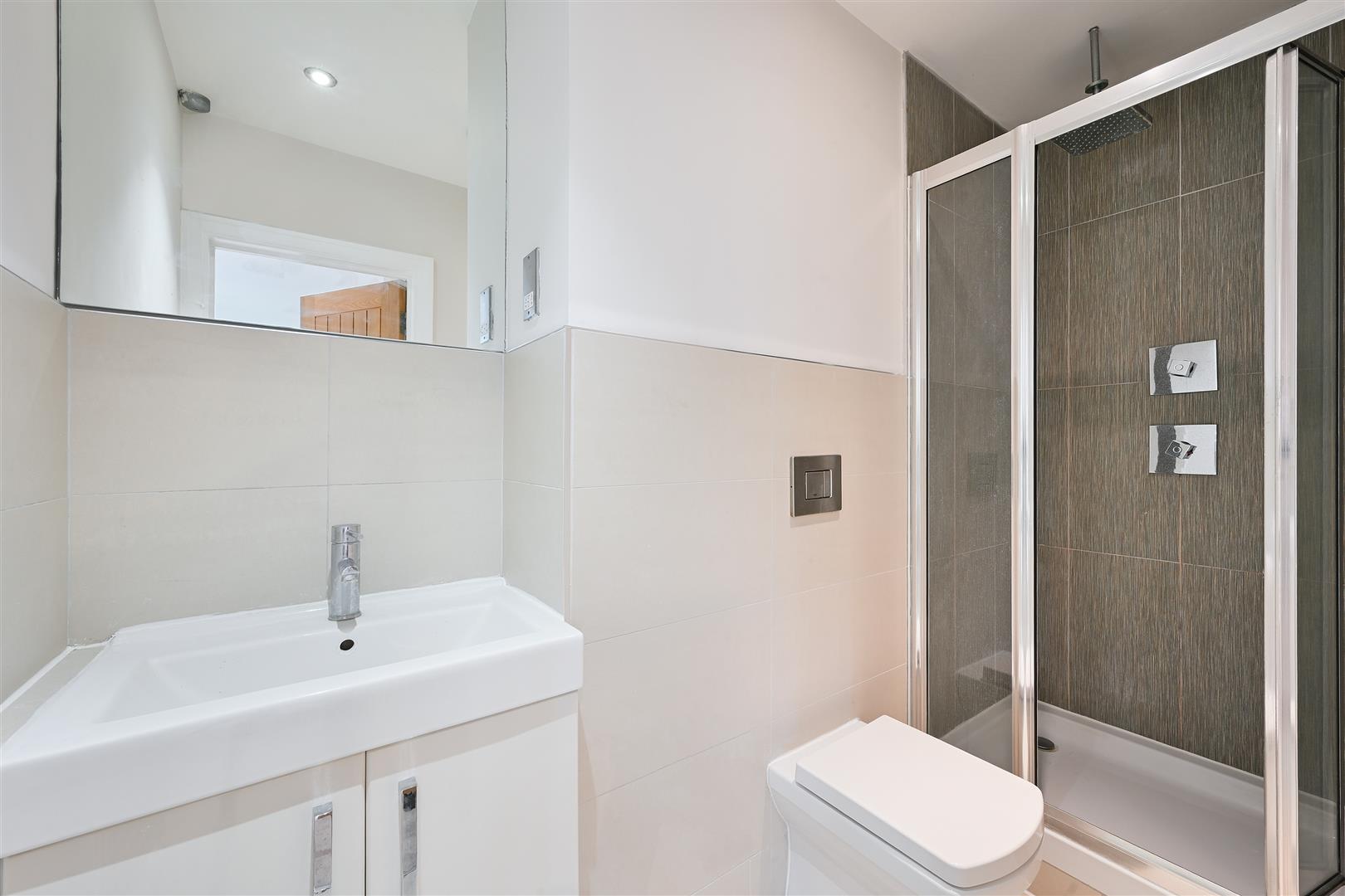 Shower cubicle, WC and hand-basin