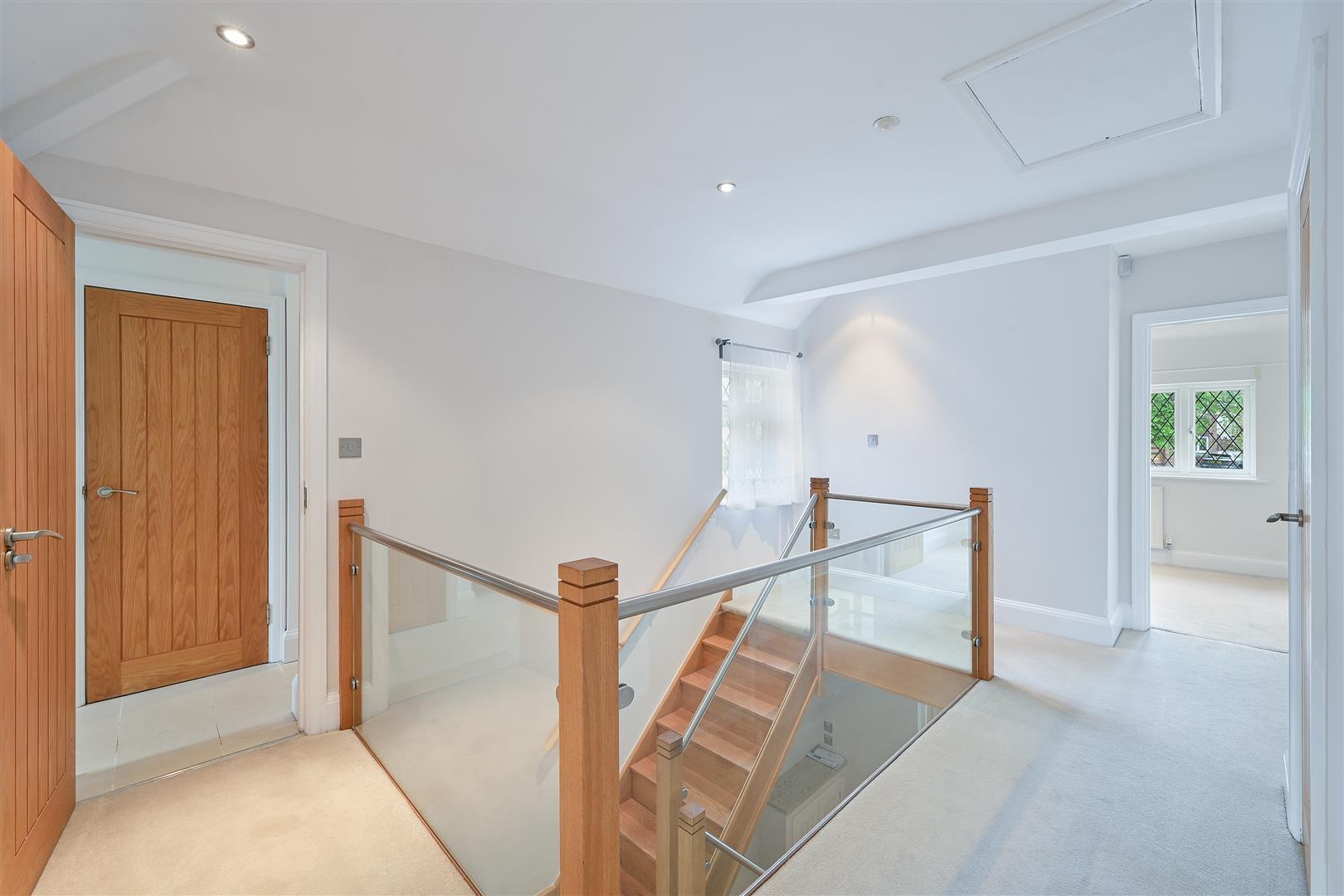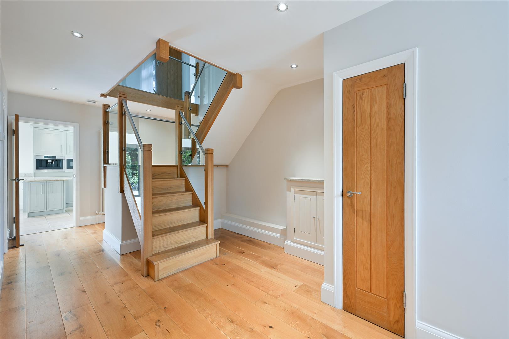 Glass and wood staircase up to first floor accommodation: