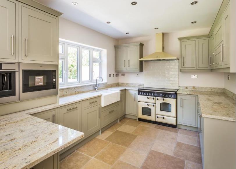 The kitchen is stunning and every cook s dream with sublime pale green units and Cashmere Gold granite work surfaces from India. A luxury feature of the kitchen is the Tumble Travetone floor tiles made cosy by the underfloor heating. In addition to the built-in ovens, there is the ivory coloured 110 Rangemaster cooker with feature extractor above. An American style fridge/freezer is also a possibility as a water connection is available. The instant boiling water tap is a further specialist feature. The other main downstairs room is the sitting room which, although spacious and light, will never feel cold with the 7KW log burner lit.
