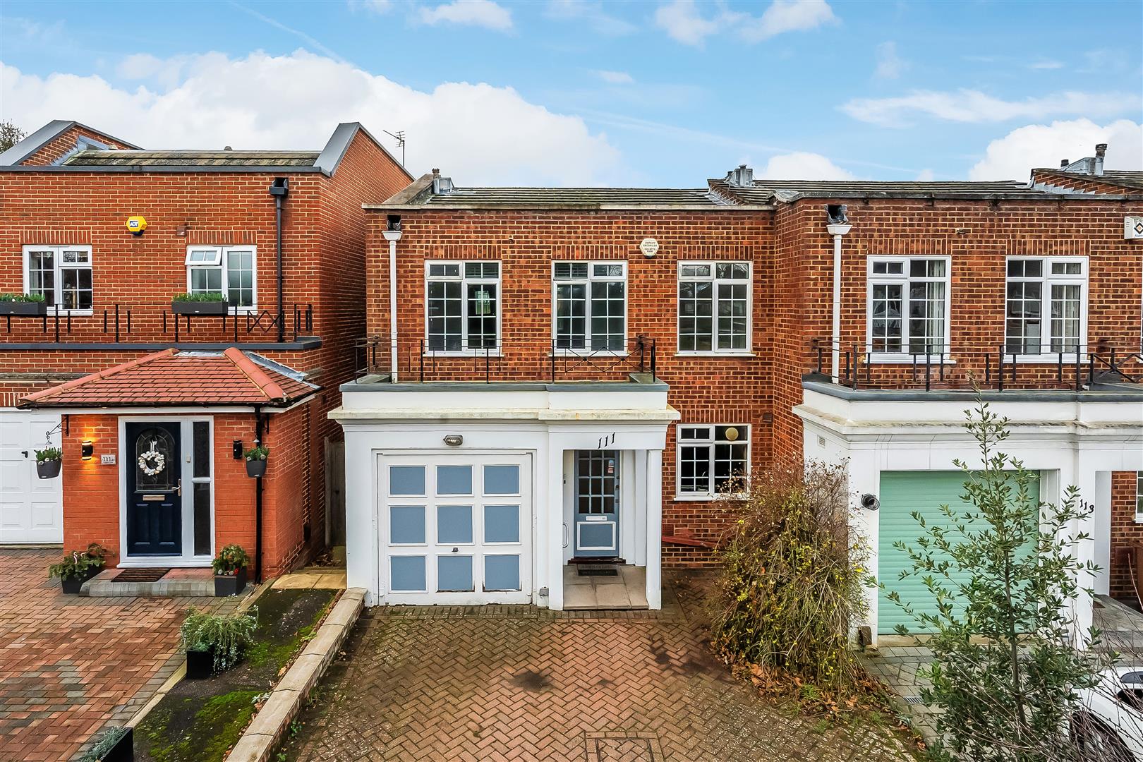 A sunny South West facing garden. Private, sunny and aptly sized for everyday enjoyment without being a maintenance chore. The frontage includes a parking space and access to garage.