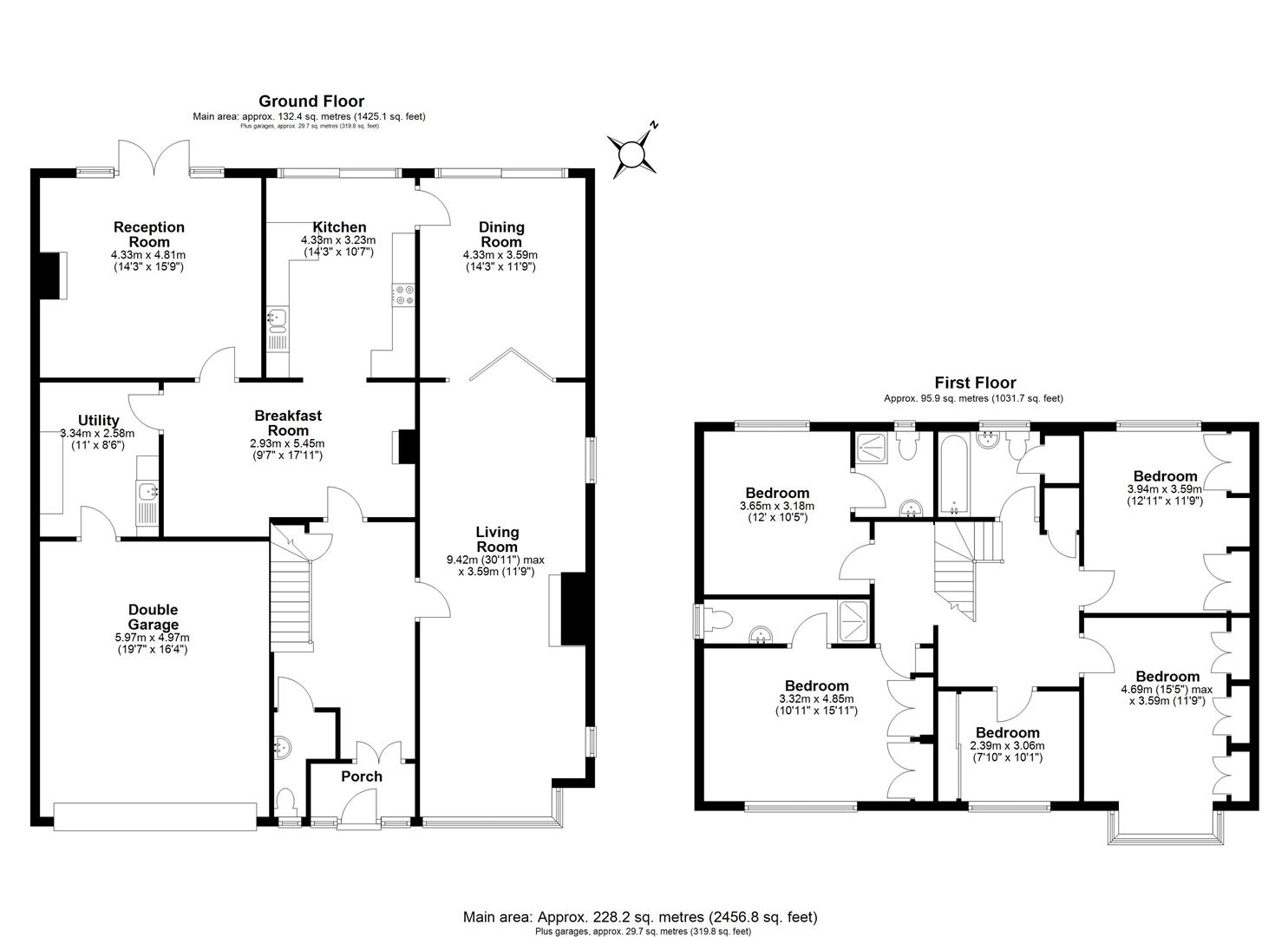 Measuring just under 2500 sq ft, this large property is detached with five double bedrooms (four of which provide built in wardrobes). Two bedrooms offer en-suites with a third family bathroom on offer. With a central hallway the ground floor rooms are flowing and easily accessed. The layout affords the possibility of easily knocking rooms together to create larger rooms should one wish. Currently the ground floor consists of four reception rooms, kitchen and separate utility room. The front facing double garage is integrated with internal access.