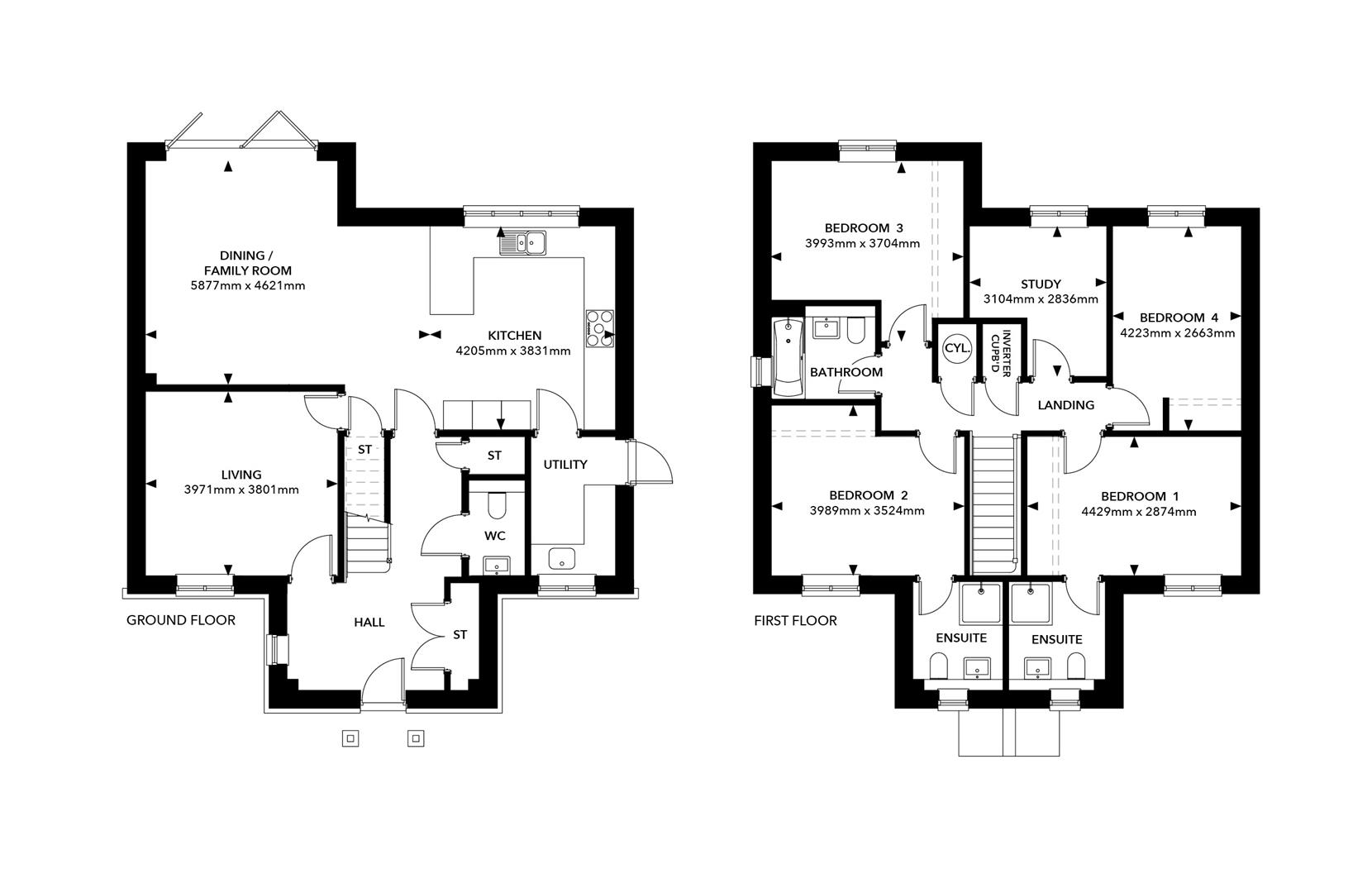 This four bedroom home features an impressive wide entrance hall on the ground floor and a generous kitchen/dining/family room plus a large utility and a separate living room. To the first floor there are four generous bedrooms, two with ensuite, family bathroom and separate study.