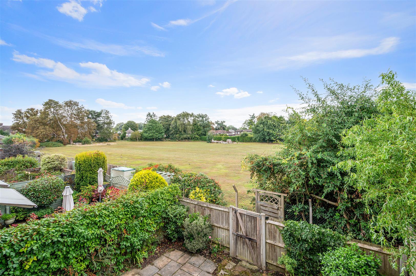Low maintenance paved garden with gated access to Banstead Recreation Ground beyond