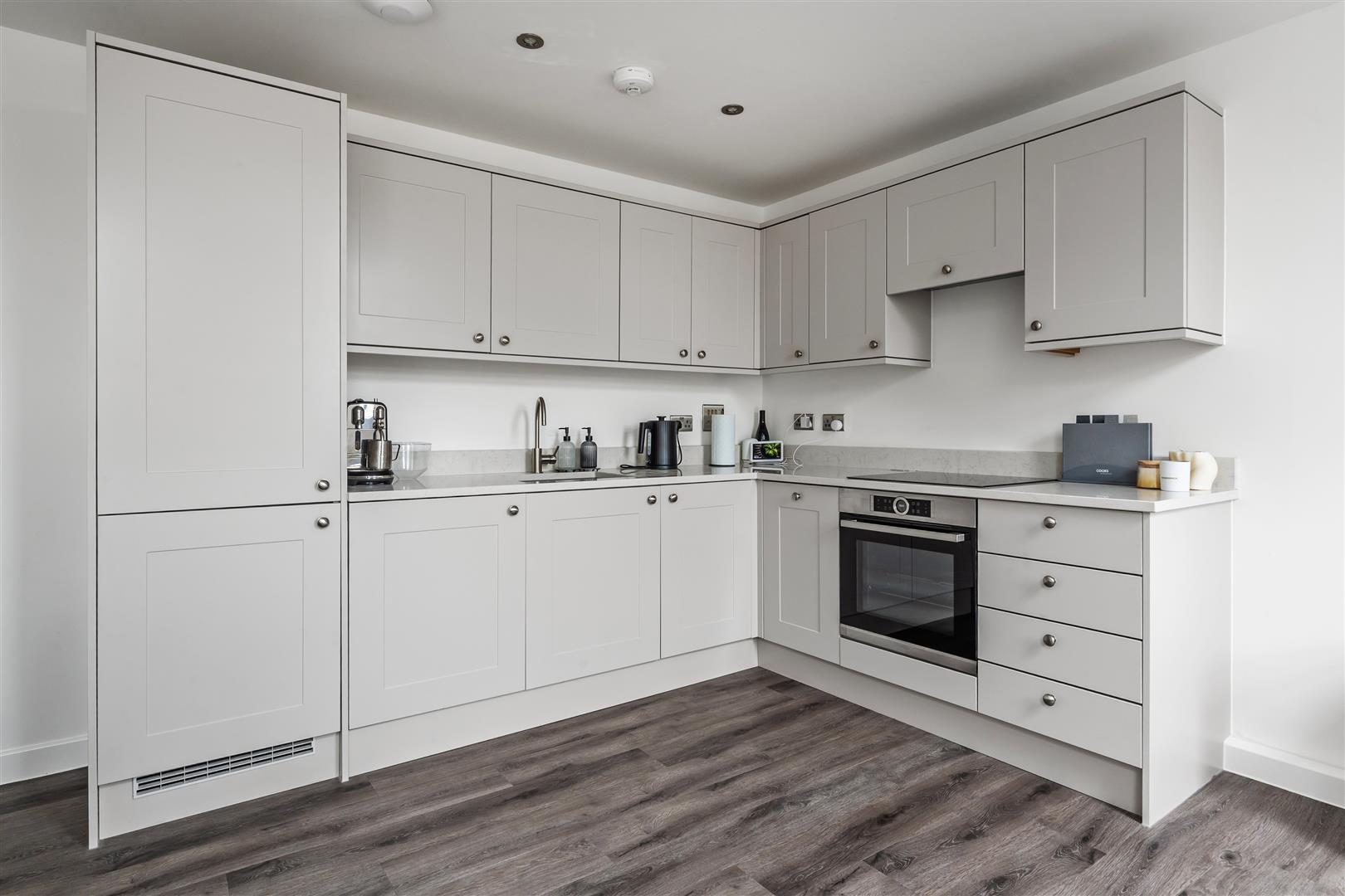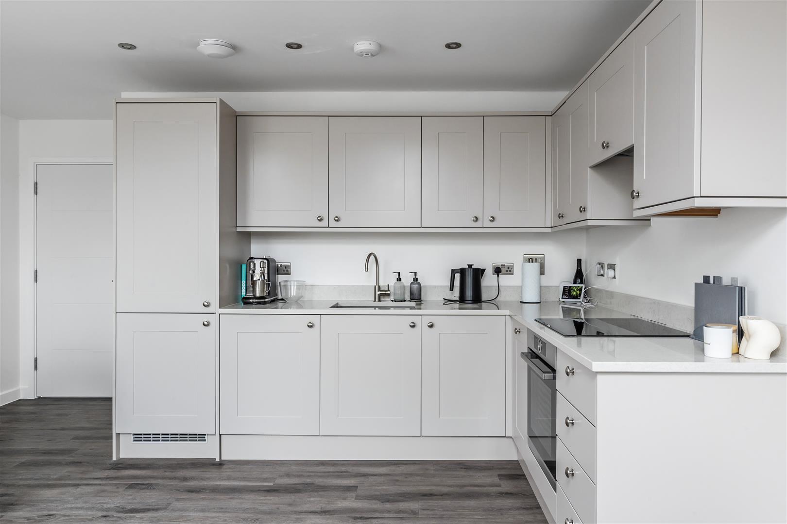 Immaculate from communal door to front door and front door and beyond. A modern development in the period style but harmoniously blending both styles with ease. With modernity comes light and efficiency and this flat is no different. Each space, be it communal or private, is spacious and easy to access. Entering through the communal door via the entry phone, the communal parts have a glass atrium effect and the lift access to the desired floor is very helpful and practical for access with shopping and prams etc. Behind the oak door, the layout, décor and features are market leading. Sharing the balcony, the double bedroom complete with fitted wardrobes and the lounge with open plan kitchen. Both rooms are spacious and homely. The bathroom is also very inviting to use and includes a three piece suite. The hallway serves all the internal rooms. Without any work required you can move straight in and enjoy.