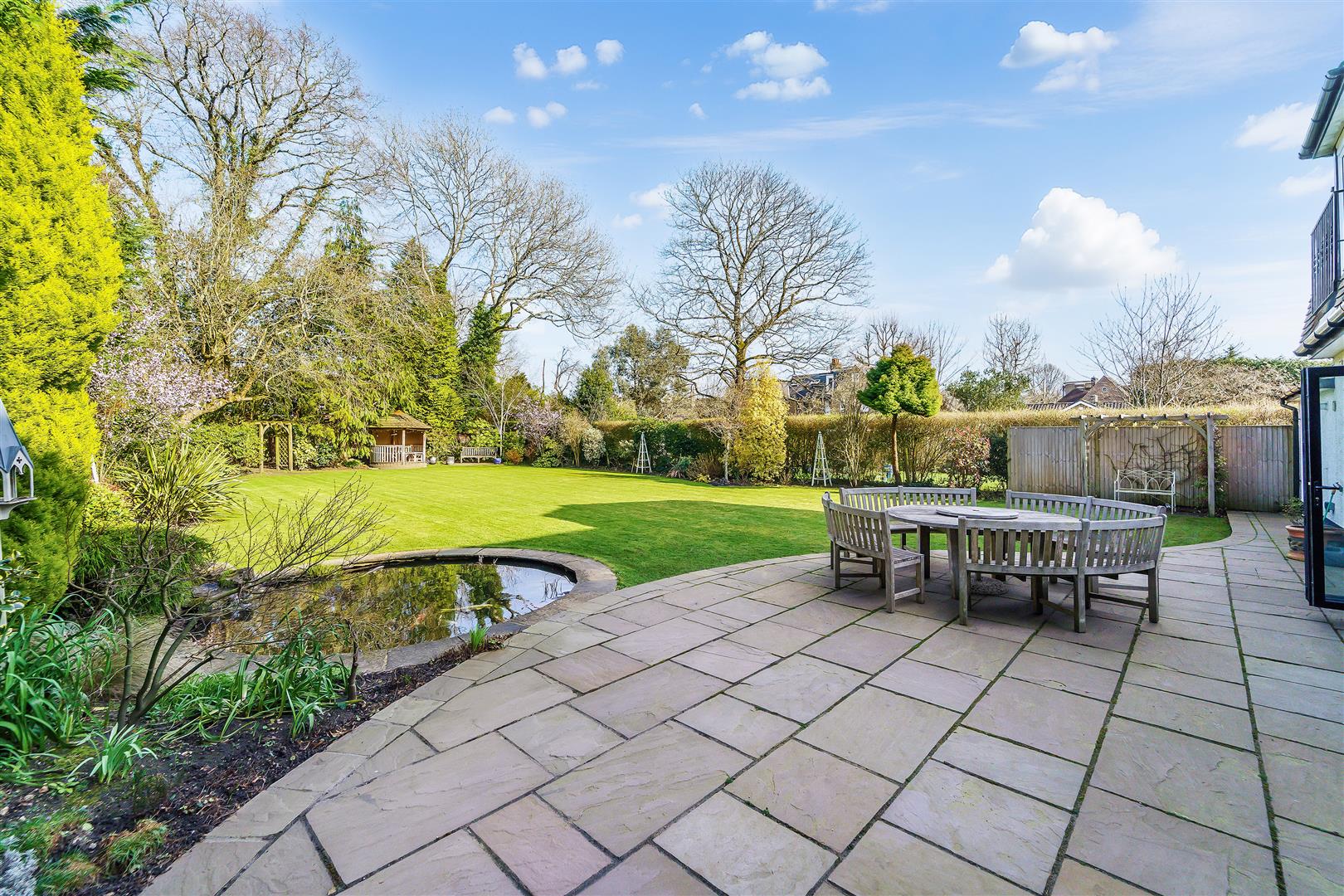 The rear garden exudes peace & bliss with a 0.3 acre east facing plot and rear garden measuring up to 115ft. Attached there is a garage and plentiful parking for eight vehicles by way of a fully tarmacked driveway.
