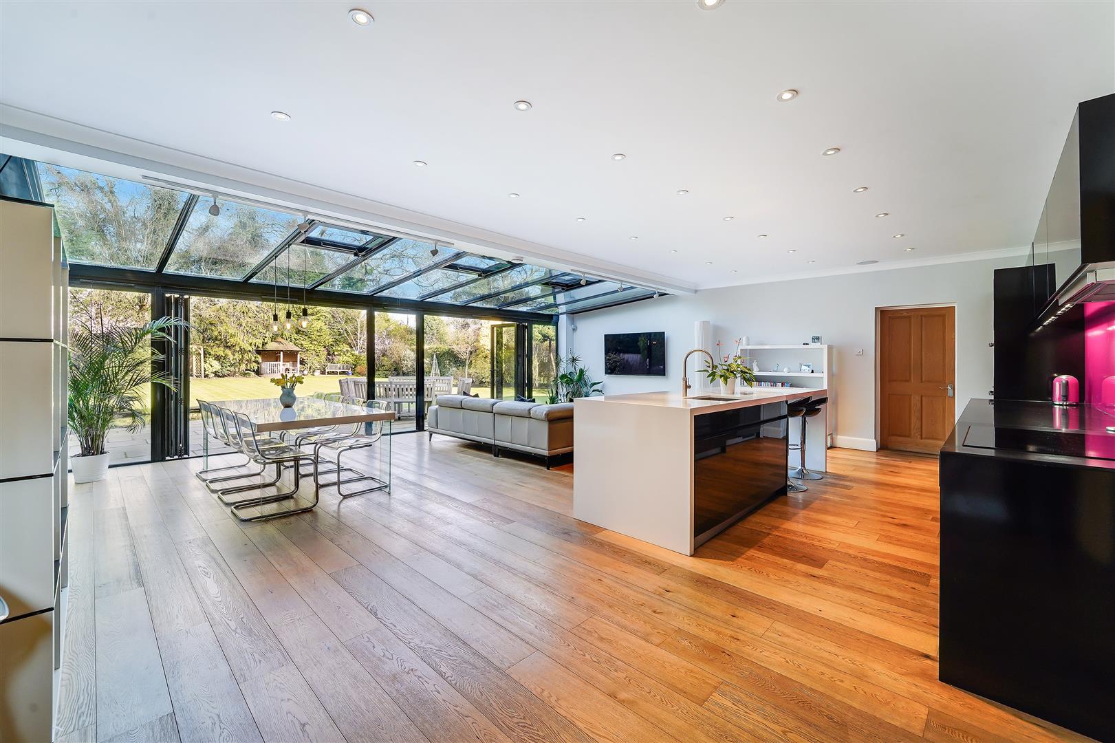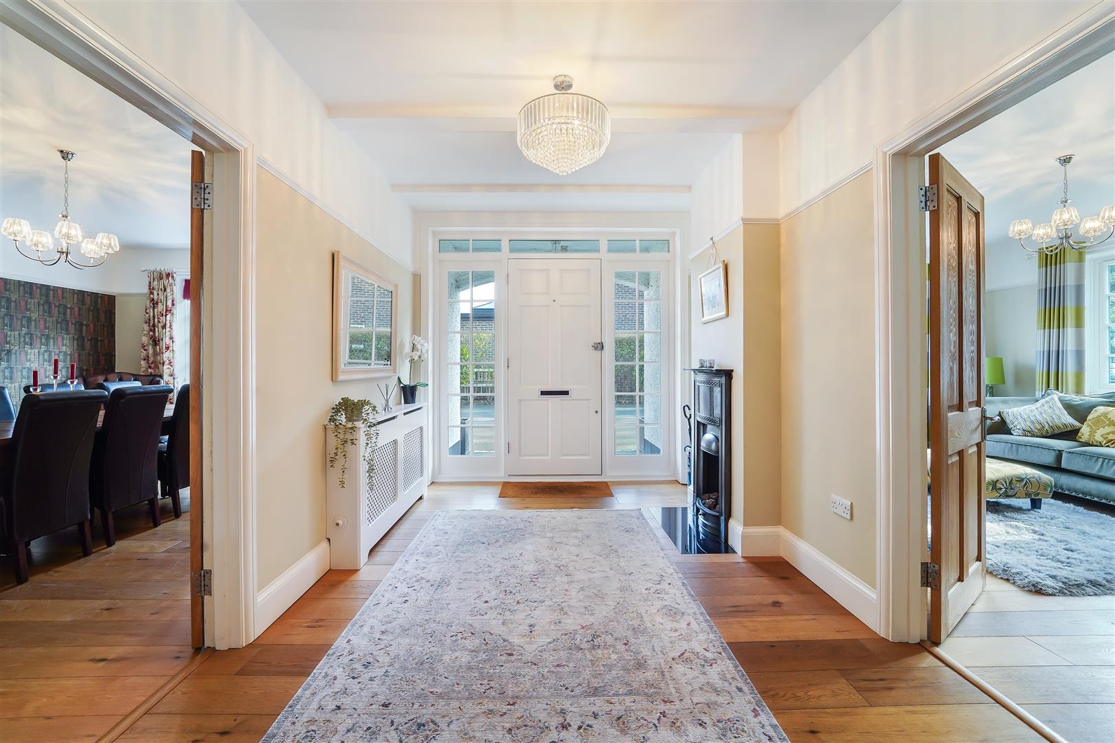 With a substantial plot this property provides impressive kerb appeal with beautiful front and rear landscaped gardens. Entered through a grand front door and hallway the property boasts three good sized reception rooms with the living room providing a perfect space to enjoy those quiet evenings at home. There is an incredible space to entertain which has is subject to a sympathetic rear extension, this includes a large open plan kitchen/diner and snug tv area, all benefitting from direct access to the rear garden by way of bi-folding doors. A convenient utility room and shower room plus internal access to the garage. The first floor is serviced by five good sized bedrooms. The master bedroom has an en-suite shower room plus dressing area and the remaining bedrooms are all of a double size with the second bedroom also benefiting from an en-suite.