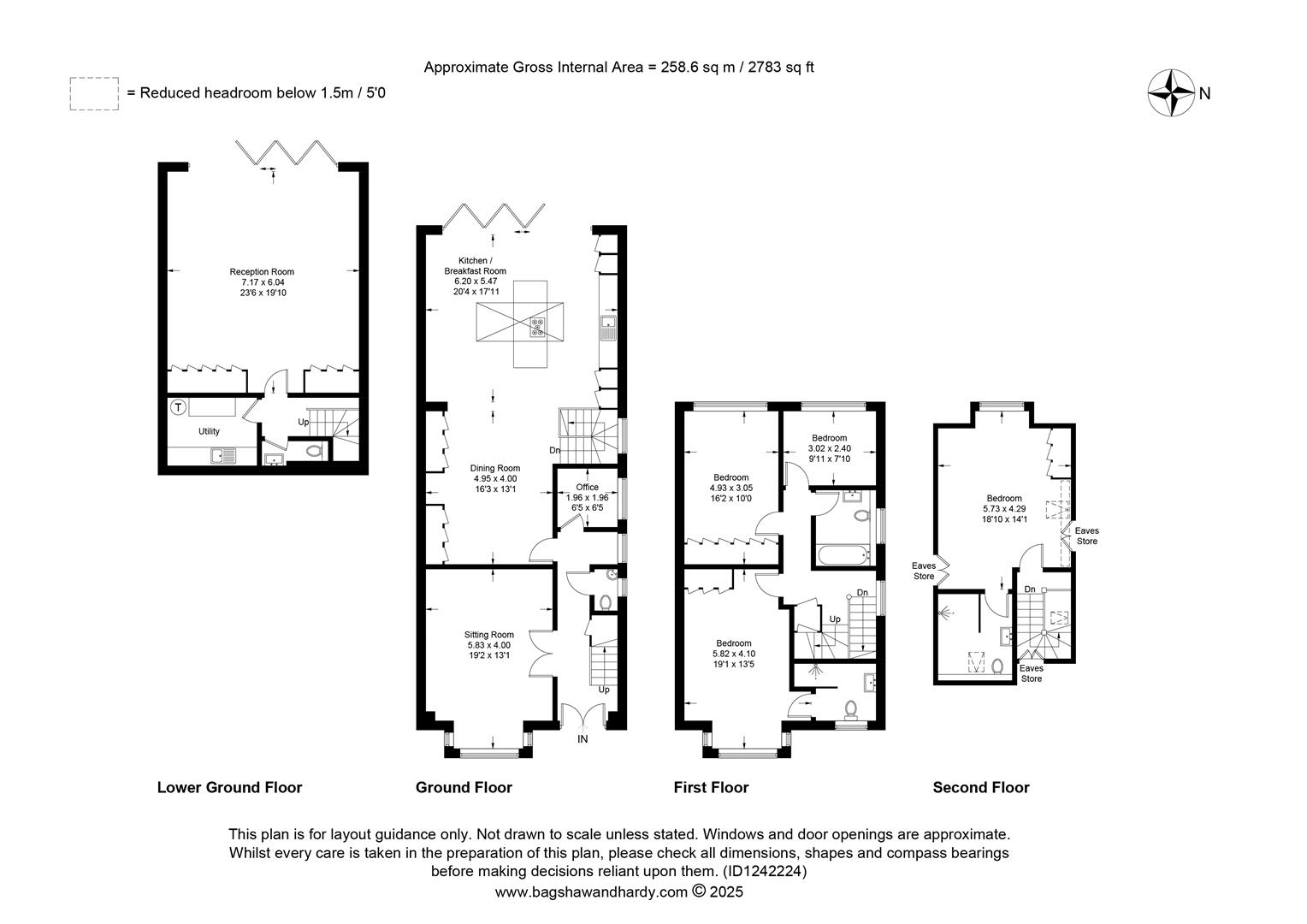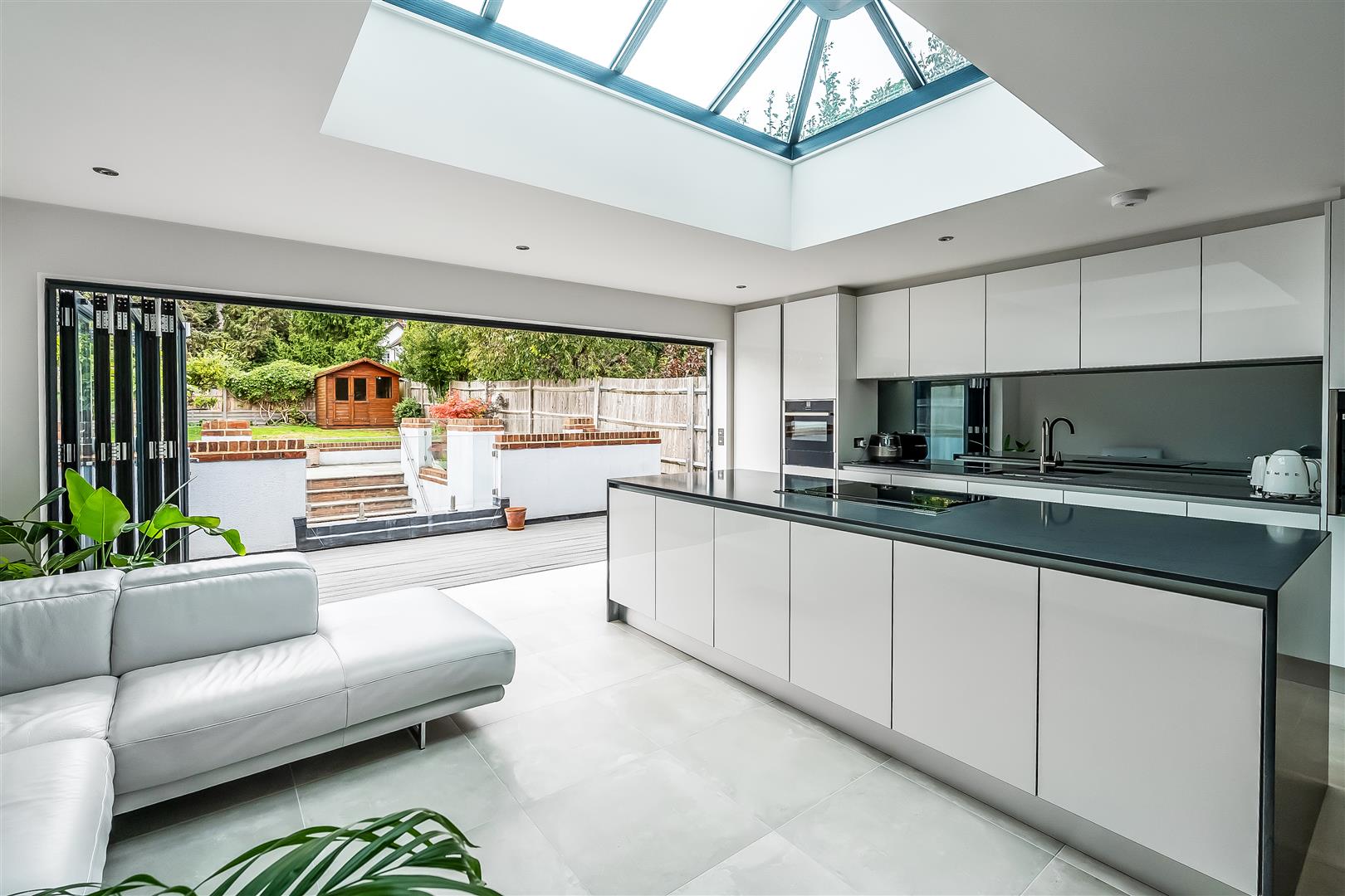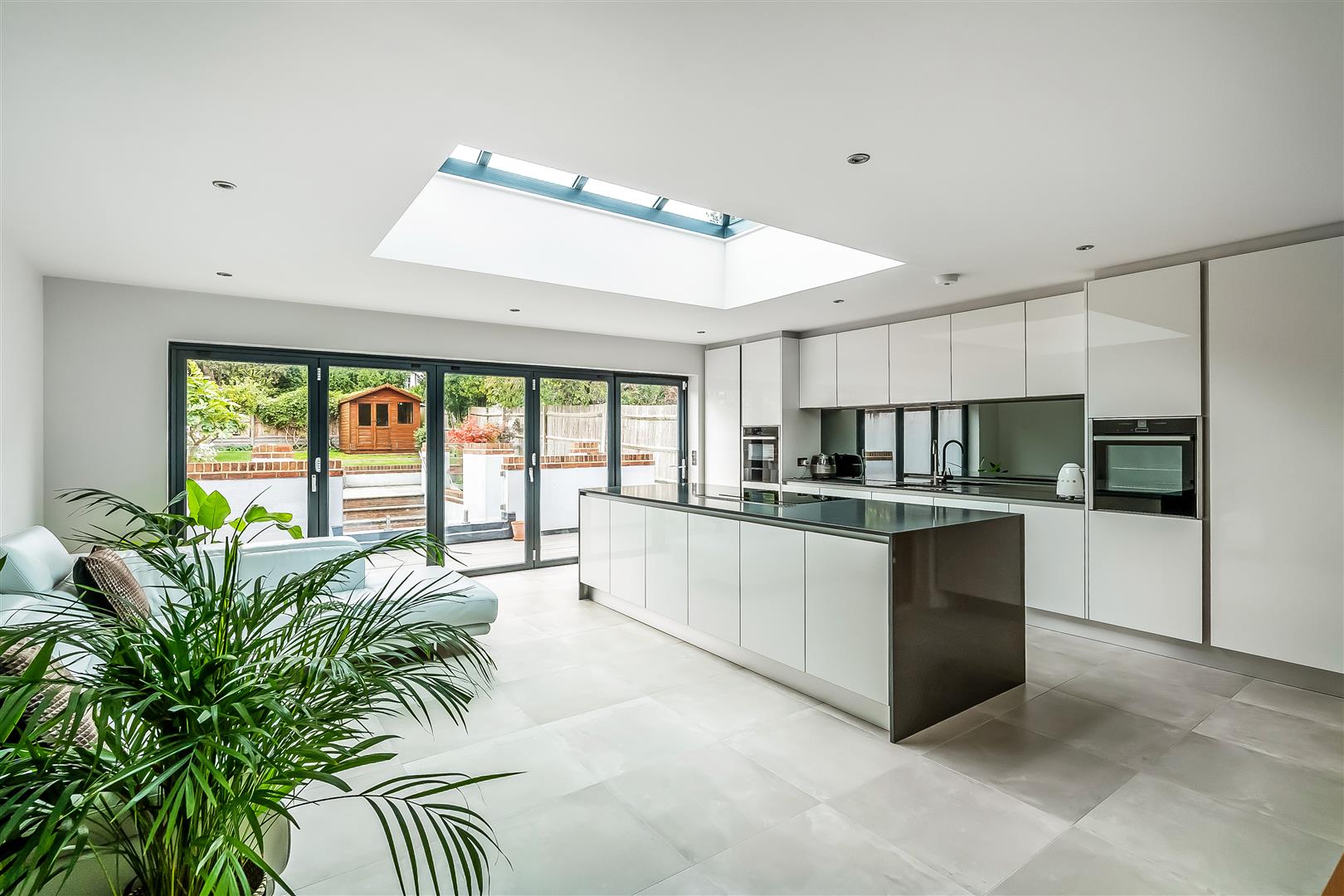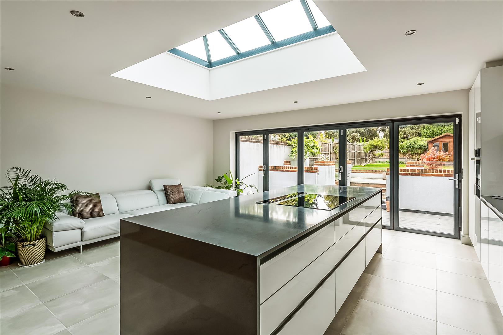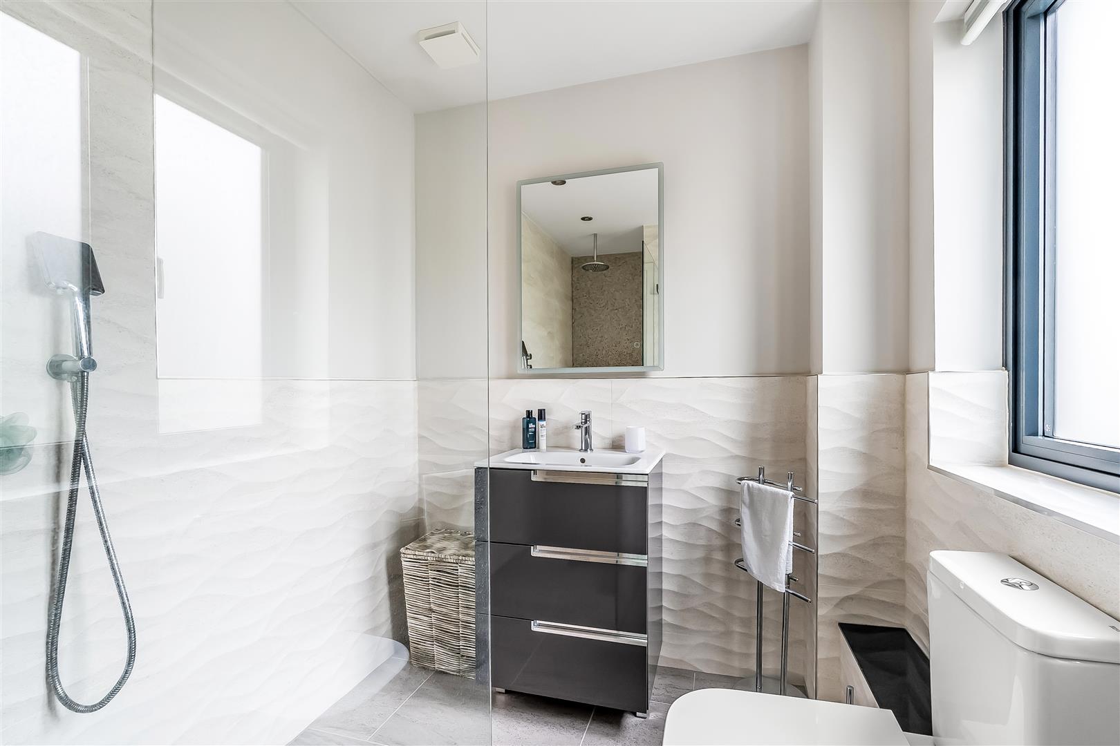 Once inside, the house is characterised by the space and quality of finish. The large hallway provides access to all ground floor rooms including the lounge, cloakroom, study and kitchen family room. Although the whole ground floor offers plenty of functionality, the main attraction is the kitchen/dining family room. The island, bi-fold doors, sky lights, fitted appliances and large tiles make this a room to impress. The lower ground floor, accessed via steps down from the kitchen, provides a superbly sized reception room. The upper floors include four bedrooms and three bathrooms. The decor is neutral, modern and slick. Being a new build the energy efficiency and running costs are excellent. Comprising off four bedrooms, three bathrooms, two reception rooms, kitchen family room, office, utility room and two cloakrooms.