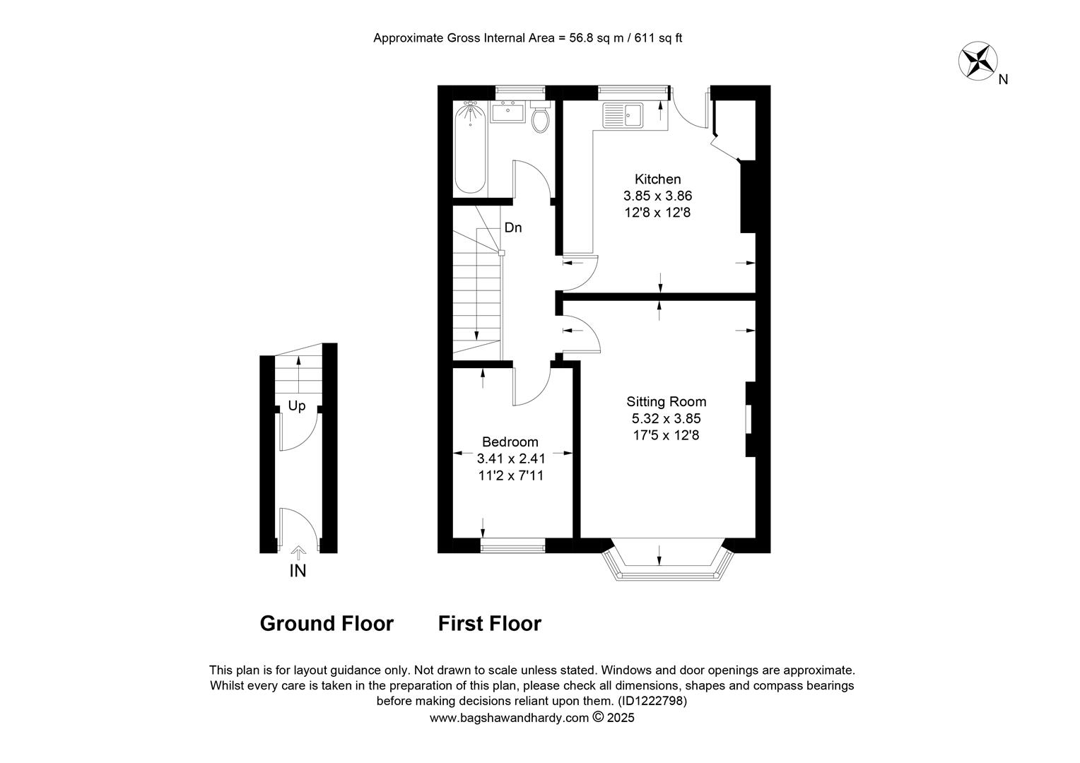 A first floor one bedroom maisonette. Stairs to first floor from its own front door leading to large kitchen, spacious lounge and separate bathroom. The property comes with the benefit of a loft.